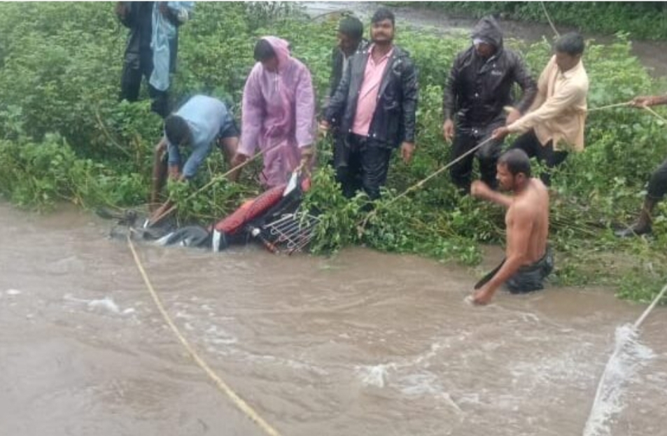 लोणी बु. तांडा रहिवाशांचे रस्ता दुरुस्तीचे निवेदन – अवकाळी पूरामुळे मोटरसायकल वाहून गेली