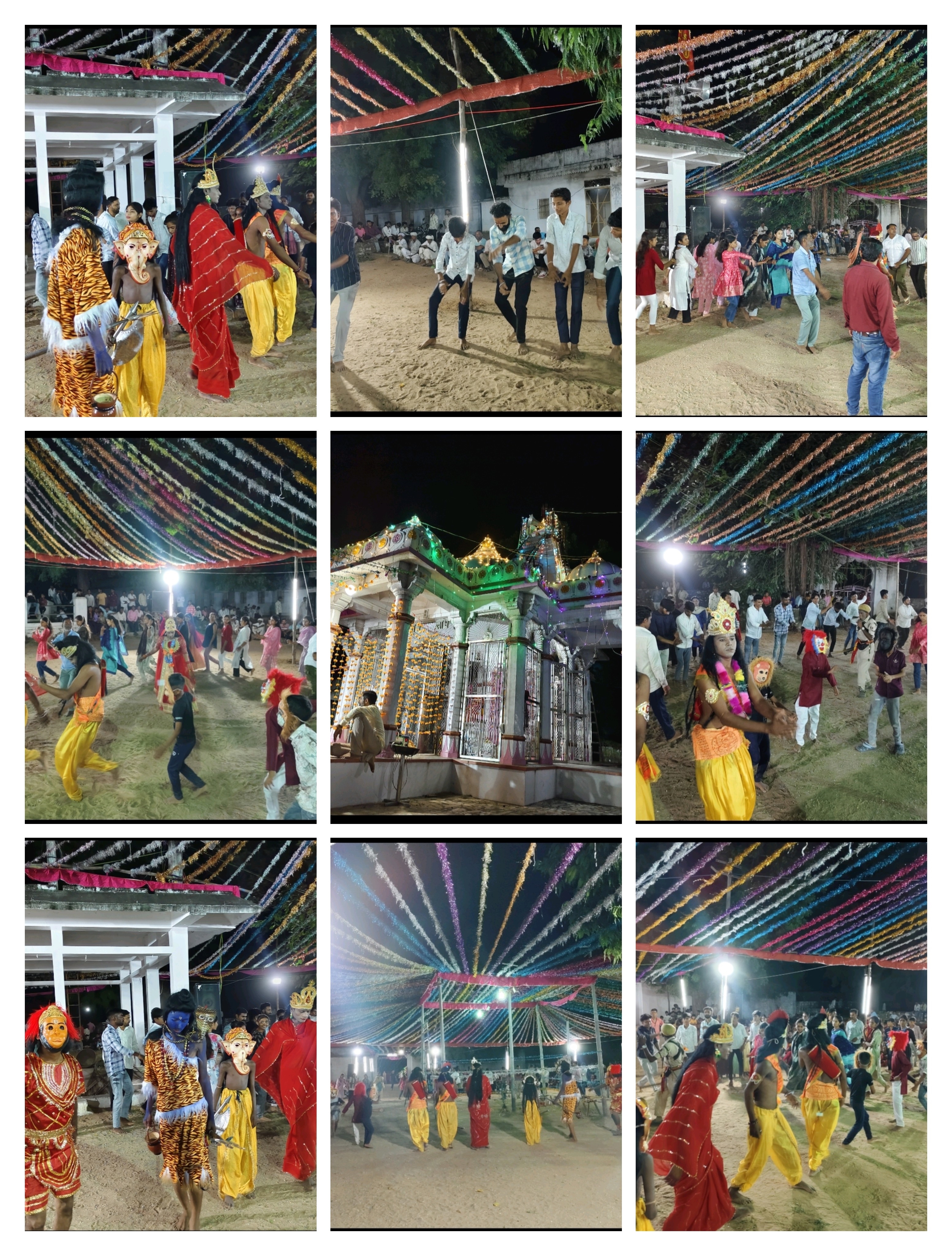 मंदिर परिसर में भक्तजन रंग-बिरंगे परिधानों में अलग-अलग रूप धारण करके नृत्य कर रहे हैं, जिससे वातावरण और भी भक्तिमय एवं आकर्षक बन गया है। ढोल-नगाड़ों और देवी भजनों की गूंज के बीच ग्रामीणों का उत्साह देखते ही बनता है।