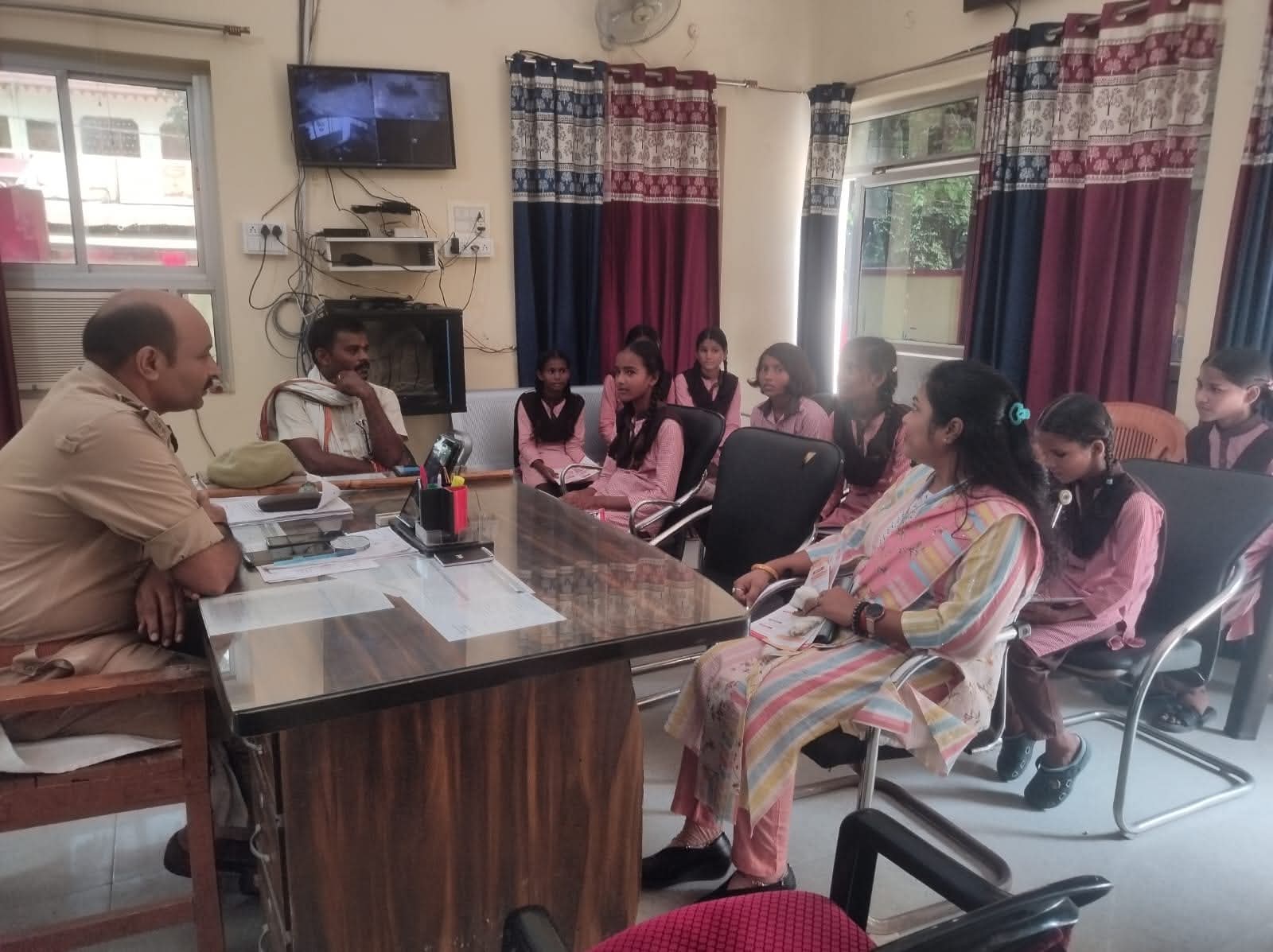 थाने के हेडमोहर्रिर रविकांत पाण्डेय ने छात्राओं को थाने के बैरिक, मालखाना, कंप्यूटर कक्ष, विवेचना कक्ष और महिला हेल्प डेस्क सहित सभी महत्वपूर्ण पटलों से परिचित कराया।