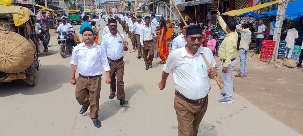 राष्ट्रीय स्वयंसेवक संघ श्री बंशीधर नगर द्वारा निकला भव्य पथ संचलन और विजयदशमी उत्सव मनाया गया।