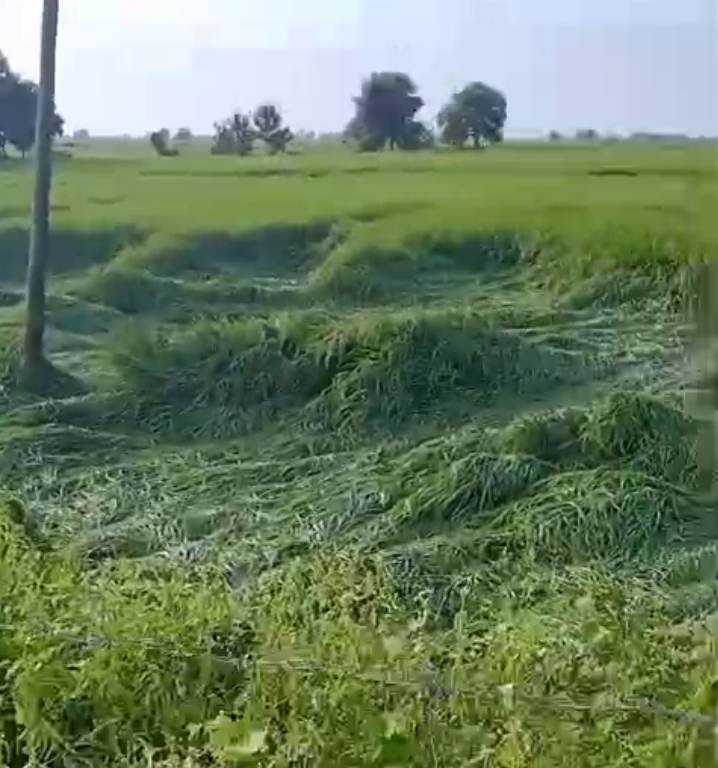 गई है जिससे धान की फसल में किसानों को काफी नुकसान होने की संभावना बता रहे हैं।