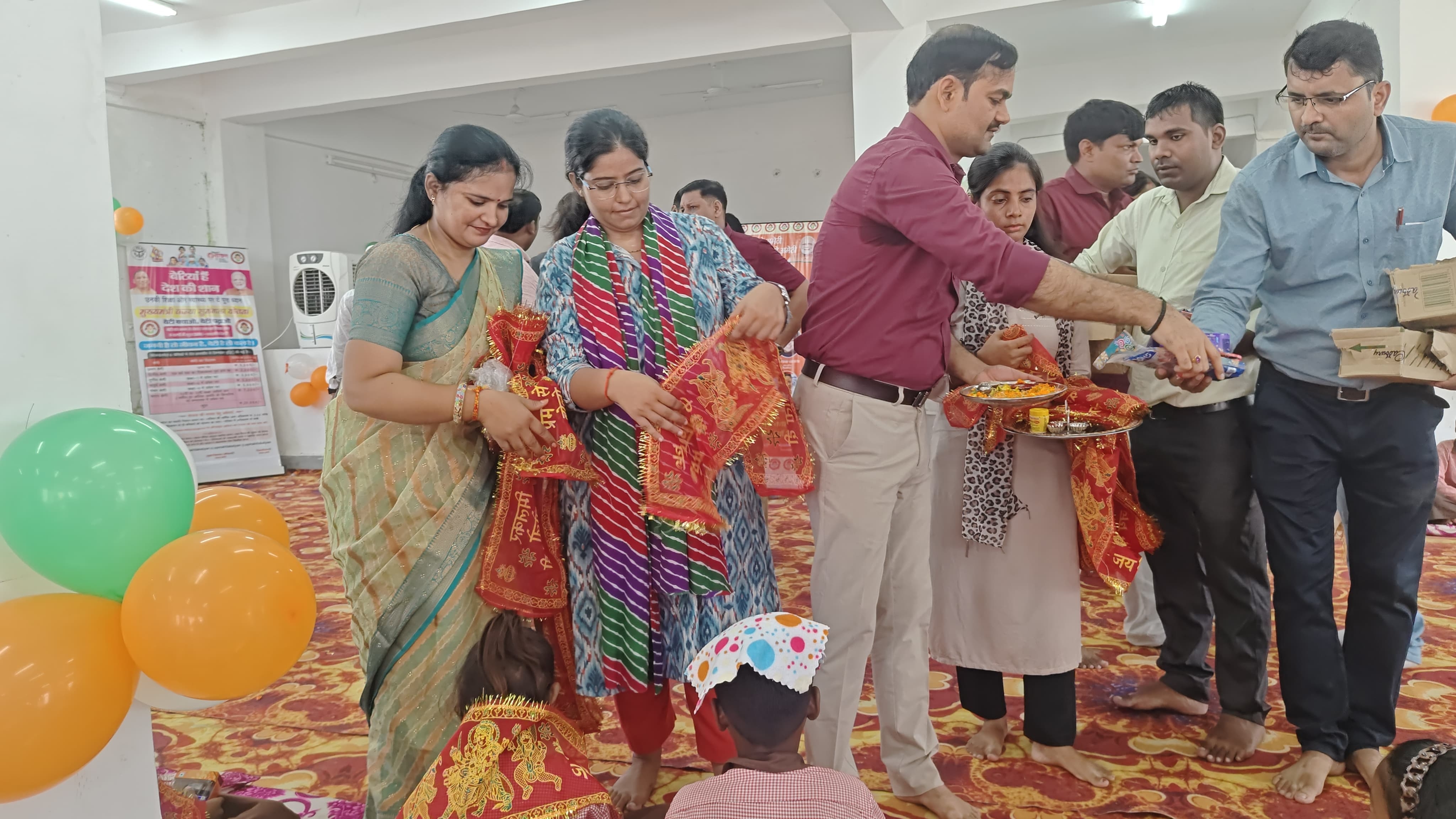 *उपस्थित कन्याओं का मुख्य अथिति जिलाधिकारी श्री संजय चौहान द्वारा दीप प्रज्ज्वलित कर के कार्यक्रम का सुभारम्भ किया गया तथा जिला मुख्य विकास अधिकारी श्री सूरज पटेल, एडीएम श्री अर्पित गुप्ता अपर जिलाधिकारी सुश्री प्रीति तिवारी एवम उपजिलाधिकारी/प्रभारी सात्विक श्रीवास्तव द्वारा कन्याओं को रोली लगाकर एवम चुनरी भेंट कर पूजन किया गया तथा पूजन के बाद *कन्या भोज का आयोजन किया गया तथा पूजन के बाद बच्चियों को उपहार स्वरूप मिठाई,फल, एवम गिफ्ट्स भी वितरित किया गया।*