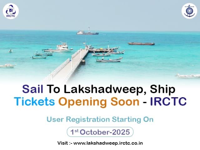 ന്യൂഡൽഹി: ഇന്ത്യൻ റെയിൽവേ കാറ്ററിംഗ് ആൻഡ് ടൂറിസം കോർപ്പറേഷൻ (IRCTC) ലക്ഷദ്വീപിലേക്കുള്ള കപ്പൽ ടിക്കറ്റ് ബുക്കിംഗ് ഉടൻ ആരംഭിക്കുന്നതായി അറിയിച്ചു. യാത്രക്കാർക്കായി യൂസർ രജിസ്ട്രേഷൻ ഒക്ടോബർ 1, 2025 മുതൽ ആരംഭിക്കും.