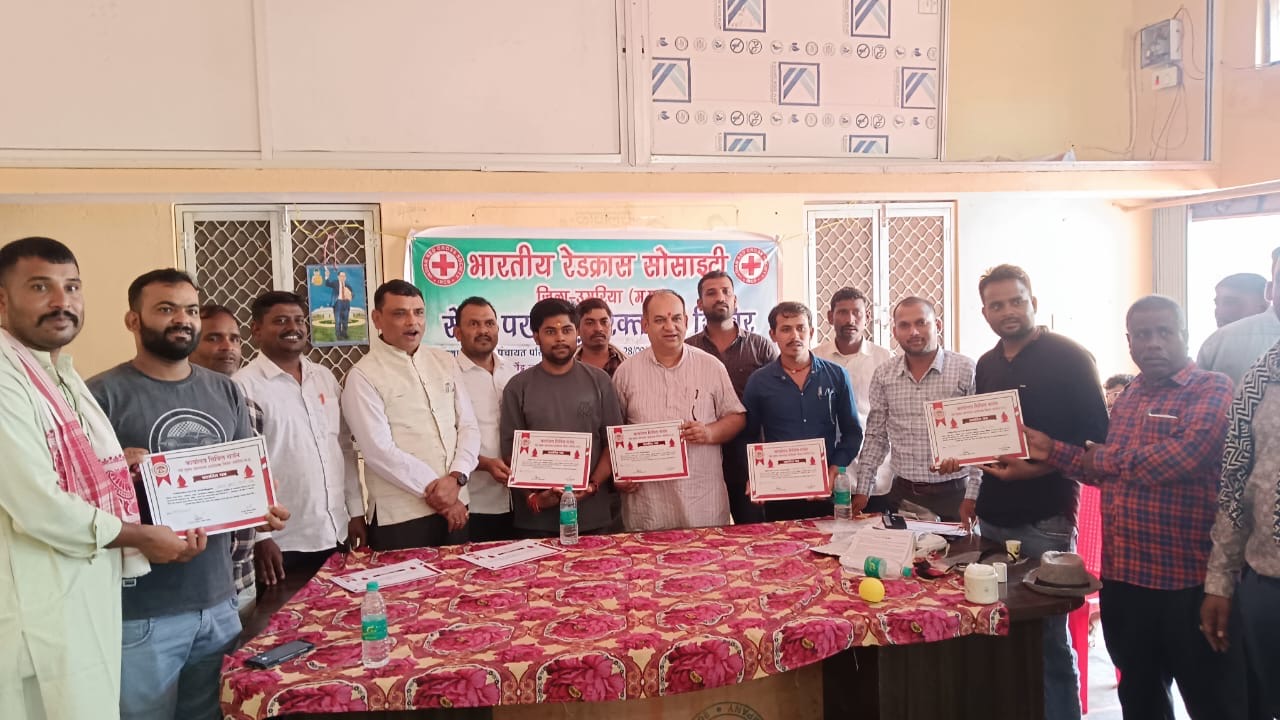 रामप्रसाद विश्वकर्मा,अतुल तिवारी जी,डॉ रमेश कोरी,विकाश श्रीवास्तव जी पंकज परिहार जितेश मिश्रा राजू मजूमदा के सहयोग से रक्तदान का आयोजन हुआ रक्तदान के उपरांत उपस्थिति सभी रक्तदातओ को आदरणीय मान सिंह जी एवं समिति के सदस्यों द्वारा प्रशस्ति पत्र दिया गया आयोजन मे आदरणीय श्री आशुतोष अग्रवाल जी ,आदरणीय श्री मिथलेश पयासी जी ,अजय शर्मा,जनपद सदस्य श्री विजय द्विवेदी जी,सरपंच प्रतिनिधि श्री दिनेश कोल जी,एवं ब्लड बैंक उमरिया की समस्त टीम उपस्थित रहे।