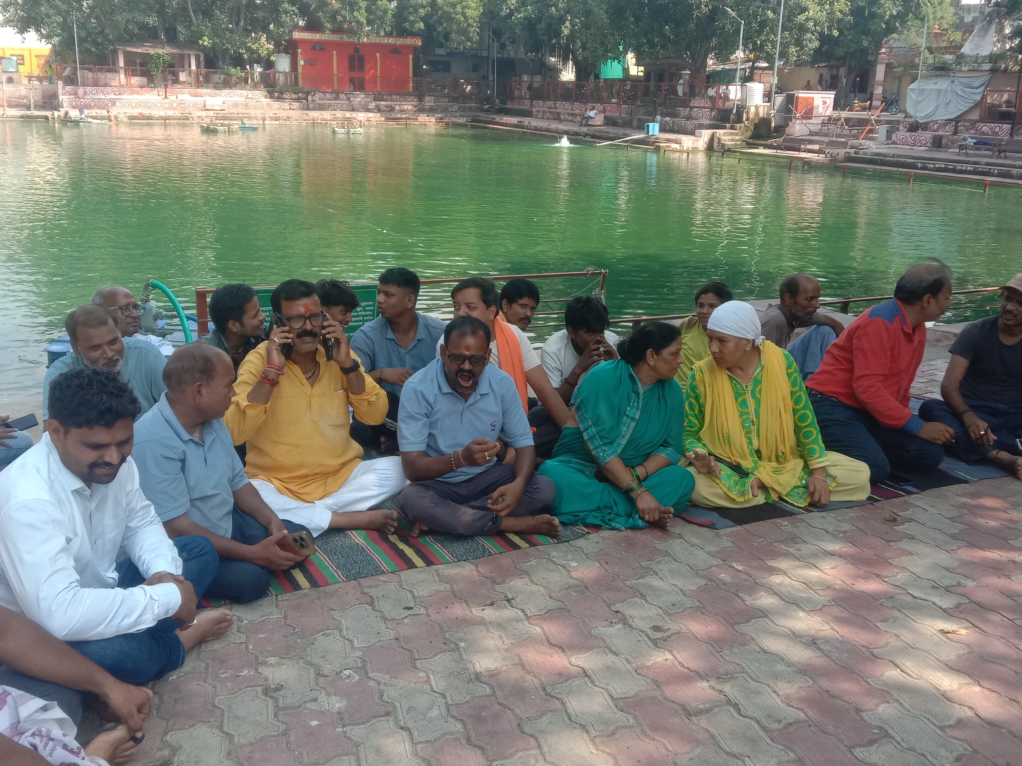 वाराणसी में शकुलधारा पोखरा नहीं जानता भेलूपुर का वार्ड 51 पार्षद अशोक सेठ नगीना पांडेय धरने दिए पुलिस द्वारा बंद किया जा रहा है जो की मूर्ति विसर्जन पोखर में नहीं होना चाहिए