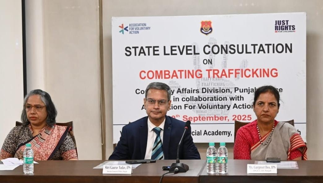ਪੰਜਾਬ ਪੁਲਿਸ ਦੇ ਕਮਿਊਨਿਟੀ ਅਫੇਅਰਜ਼ ਡਿਵੀਜ਼ਨ ਵੱਲੋਂ ਜਸਟ ਰਾਈਟਸ ਫਾਰ ਚਿਲਡਰਨ ਦੇ ਸਹਿਯੋਗ ਨਾਲ ਸਟੇਟ ਜੁਡੀਸ਼ੀਅਲ ਅਕੈਡਮੀ, ਚੰਡੀਗੜ੍ਹ ਵਿਖੇ ਮਨੁੱਖੀ ਤਸਕਰੀ ‘ਤੇ ਇੱਕ ਰਾਜ ਪੱਧਰੀ ਵਿਚਾਰ-ਵਟਾਂਦਰਾ ਆਯੋਜਿਤ ਕੀਤਾ ਗਿਆ। ਇਸ ਵਿਚਾਰ-ਵਟਾਂਦਰੇ ਵਿੱਚ ਪੁਲਿਸ, ਵੱਖ-ਵੱਖ ਸਰਕਾਰੀ ਵਿਭਾਗਾਂ, ਕਮਿਸ਼ਨਾਂ ਅਤੇ ਗੈਰ-ਸਰਕਾਰੀ ਸੰਗਠਨਾਂ ਦੇ ਨੁਮਾਇੰਦਿਆਂ ਨੇ ਭਾਗ ਲਿਆ।
