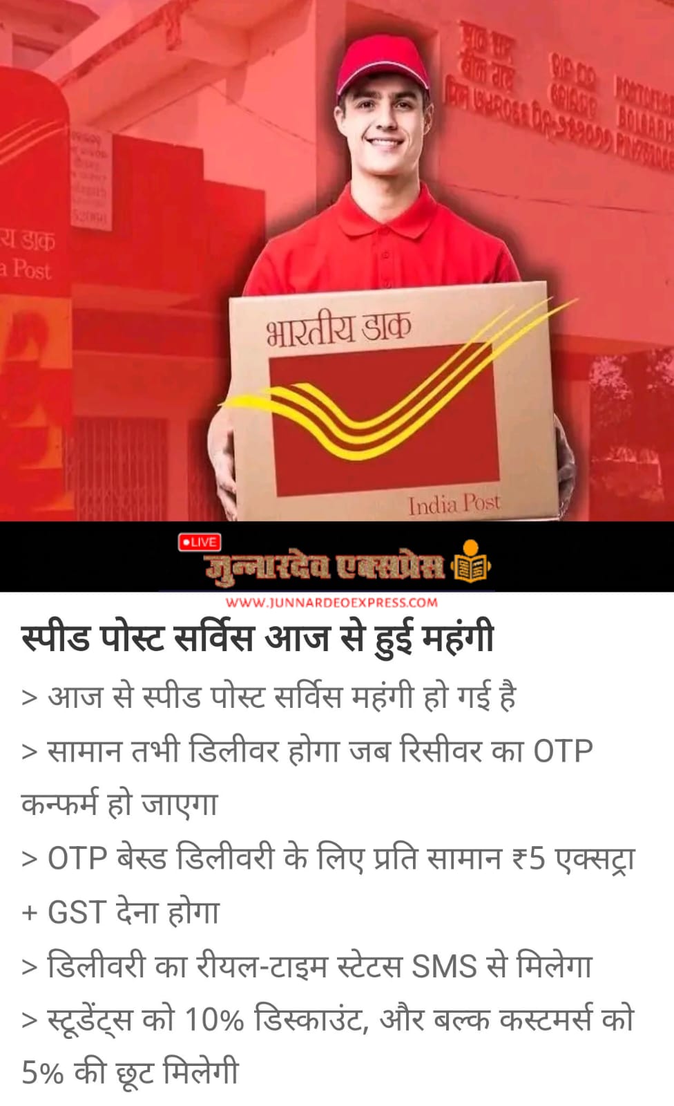 स्पीड पोस्ट सर्विस आज से हुई महंगी