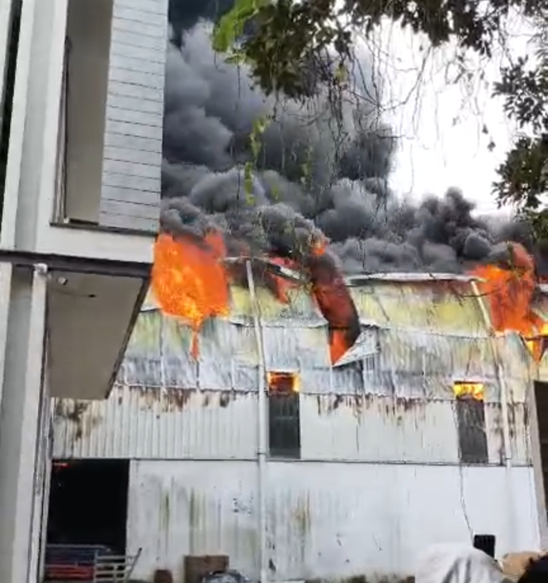 आग की लपटें इतनी भयानक थीं कि फैक्ट्री के टीन शेड पिघलकर नीचे गिरने लगे।
