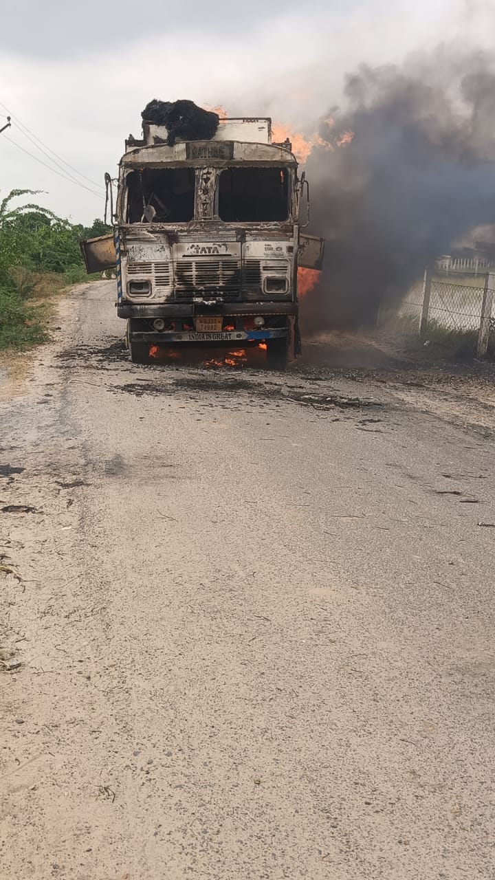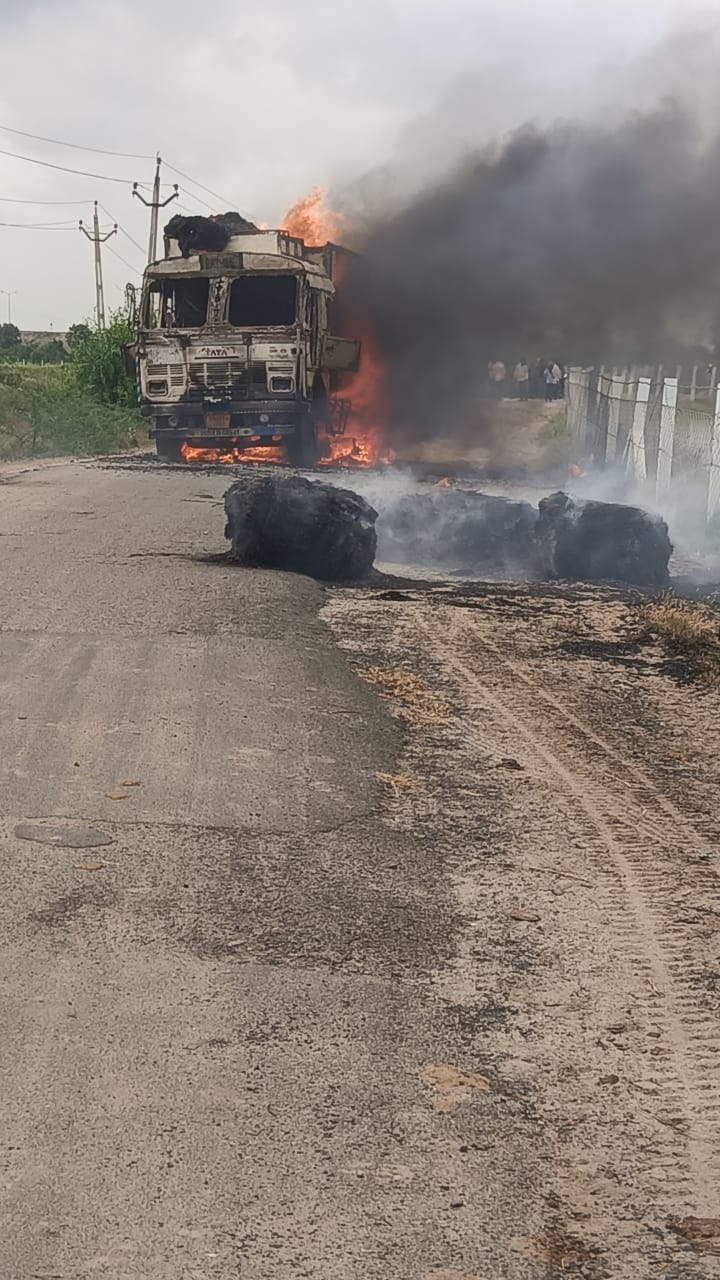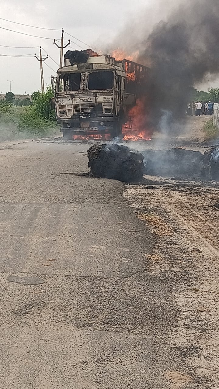 પાટણ જિલ્લાના માનપુરા ગામે ઘાસ ભરેલી ગાડીમાં લાગી આગ
