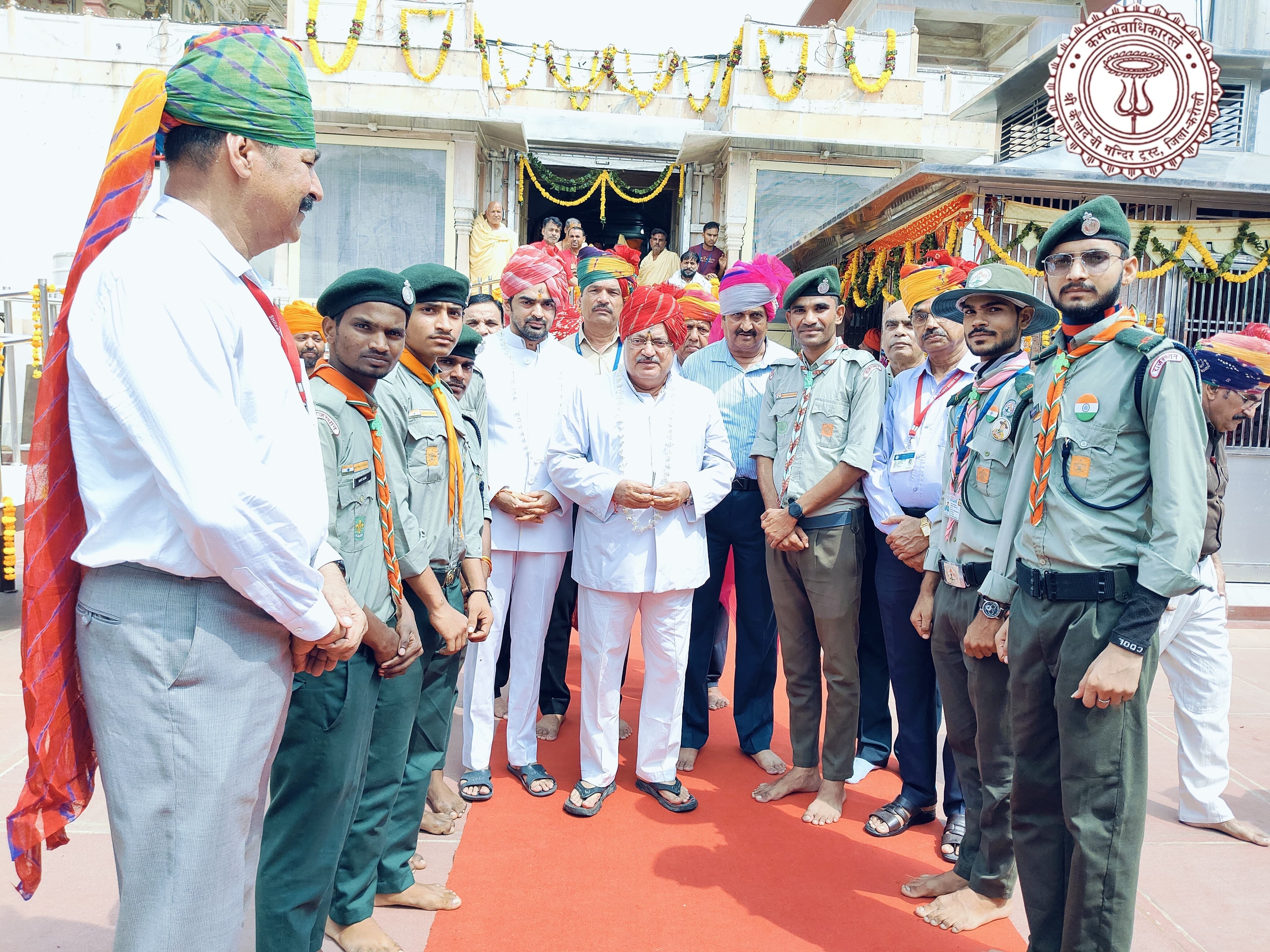हिंदुस्तान स्काउट्स एण्ड गाइड्स राजस्थान राज्य जिला मुख्यालय करौली के तत्वाधान में कैला मैया आश्विन नवरात्रा 2025 सेवा कार्य के दौरान करौली के दरबार नरेश कृष्ण चन्द्रपाल , सोल ट्रस्टी कैला देवी मंदिर ट्रस्ट के कार्यकारी अधिकारी किशनपाल ( अध्यक्ष हिन्दुस्तान स्काउट्स एण्ड गाइड्स राजस्थान राज्य करौली )सभी लोगों ने स्काउट सेवा को देखकर बहुत प्रशंसा की