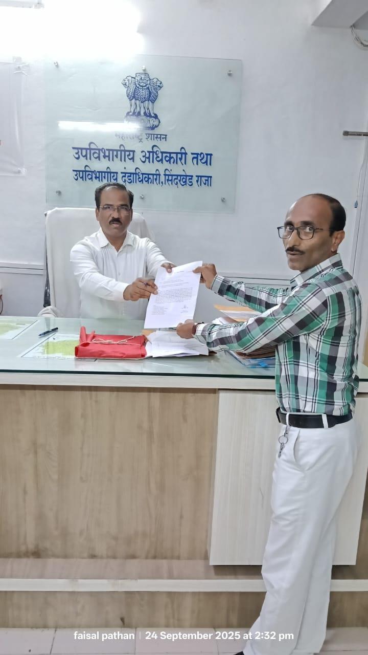 साखरखेर्डा येथील घरकुल लाभार्थ्यांनी त्यांच्या हक्काच्या घरासाठी प्रशासनाकडे पुन्हा एकदा ठाम भूमिका घेतली आहे. *पत्रकार असलम अंजुम मो. बशीर (माजी उपसरपंच, साखरखेर्डा)* आणि *मोहम्मद फयाज मो. शरीफ*, यांनी *उपविभागीय अधिकारी, सिंदखेडराजा* यांच्याकडे लेखी निवेदन सादर करत *दि. 29 सप्टेंबर 2025 पासून बेमुदत आमरण उपोषणास* बसण्याचा इशारा दिला आहे.
