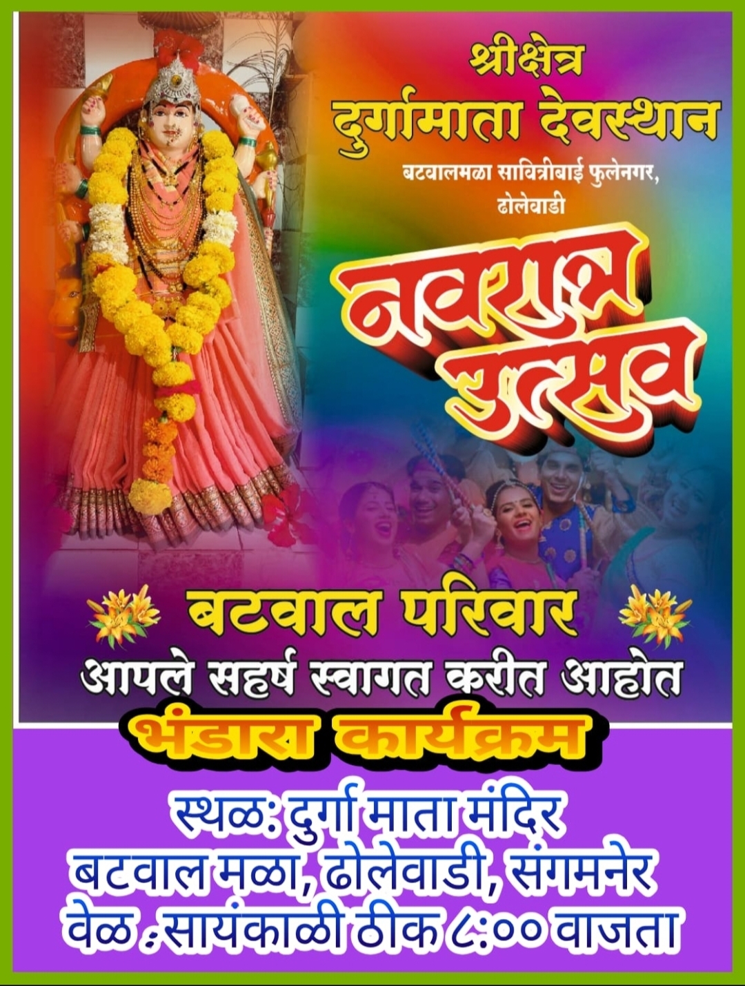 श्री क्षेत्र दुर्गा माता देवस्थान बटवाल मळा (सावित्रीबाई फुले नगर ) भंडारा व महा प्रसाद