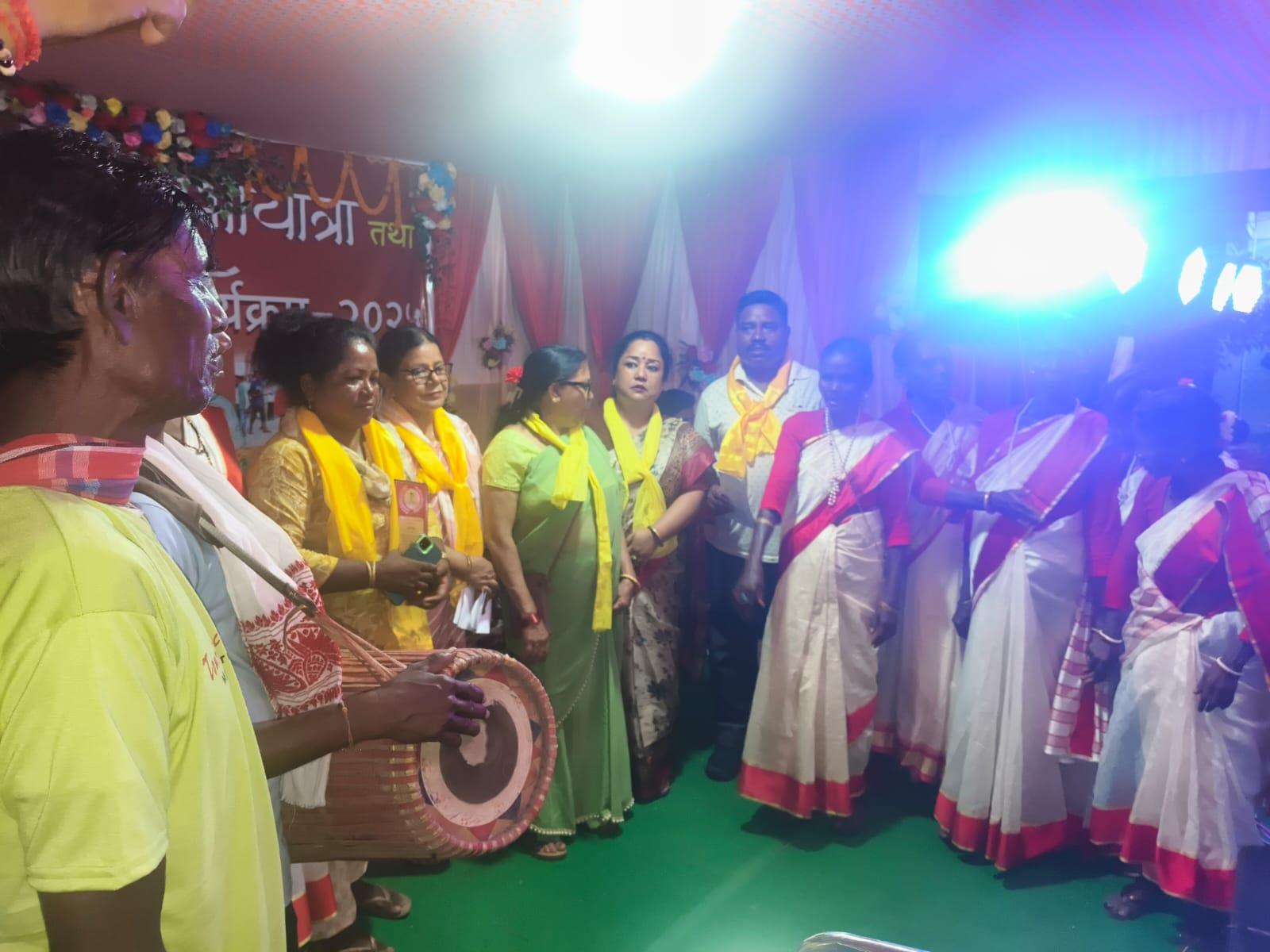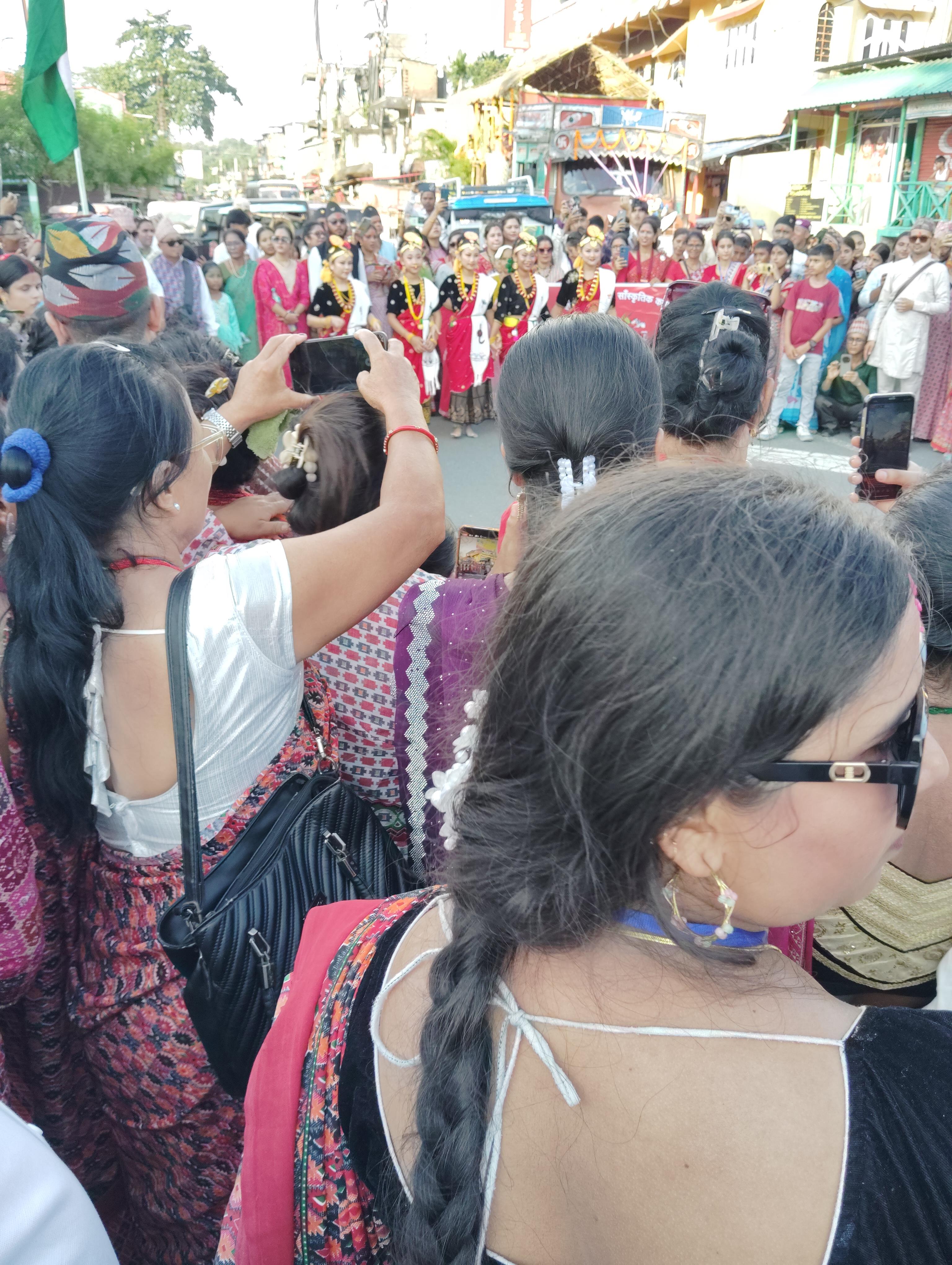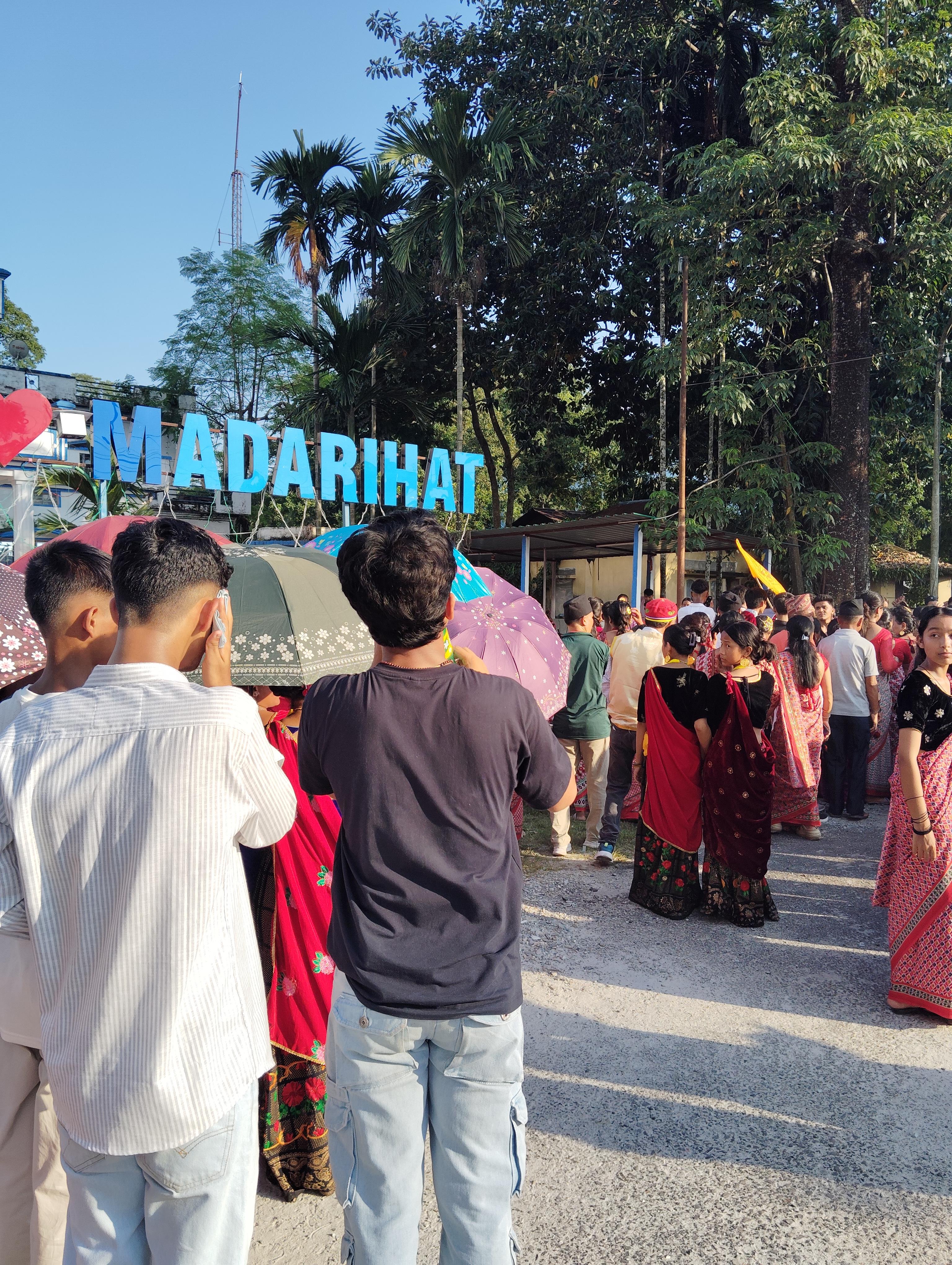 # आज मदारीहाट बीरपाड़ा खंड अंतर्गत विभिन्न स्थानों पर शारदीय नवरात्र पर्व श्री श्री श्री दुर्गा देवी की महानवमी सिद्धिदात्री पूजा अर्चना के साथ संपन्न हुई।* दिनांक 29/09/2025 को महासप्तमी के दिन इस क्षेत्र के विभिन्न पूजा पंडालों में गोरखाओं की कला संस्कृति की झलकियां फ़ुलपाती शोभा यात्रा देखने को मिली।* मदारीहाट स्थित मध्य खयेरबारी में श्री श्री श्री सिद्धिदात्री मंदिर प्रांगण में दुर्गा देवी की पूजा अर्चना सनातनी संस्कृति के परम्परा अनुसार विधिवत् ढंग से सम्पन्न हुई।* टोटोपारा, हाँटापारा के साथ साथ स्थानीय कला संस्कृति प्रेमी कलाकारों ने अपने अपने नृत्य गीत परिवेशन करते हुए शोभा यात्रा को परिपूर्णता प्रदान किया।