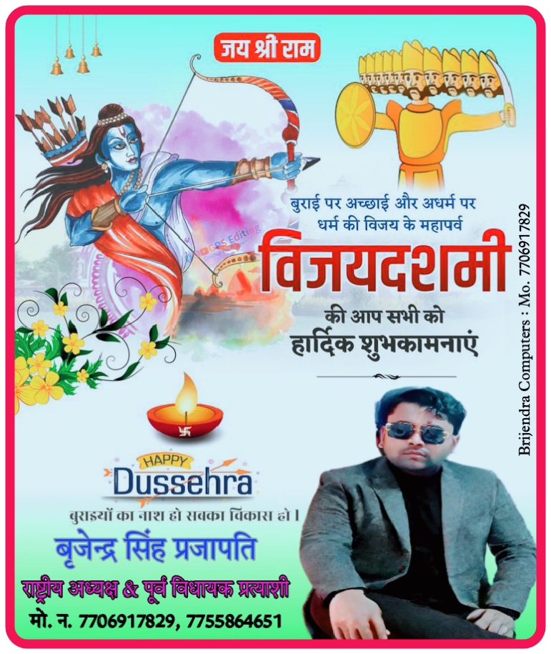 ЁЯУ░ рд╡рд┐рдЬрдпрджрд╢рдореА рдкрд░ рдмреБрд░рд╛рдИ рдкрд░ рдЕрдЪреНрдЫрд╛рдИ рдХреА рд╡рд┐рдЬрдп рдХрд╛ рд╕рдВрджреЗрд╢ тАУ рдмреГрдЬреЗрдиреНрджреНрд░ рд╕рд┐рдВрд╣ рдкреНрд░рдЬрд╛рдкрддрд┐