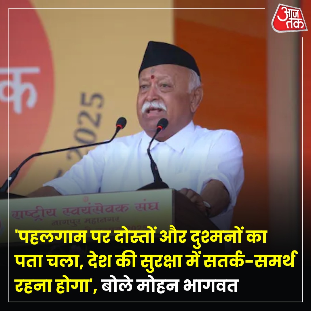 ⭕ मोहन भागवत ने अपने संबोधन में पहलगाम हमले का जिक्र करते हुए कहा कि धर्म पूछकर आतंकियों ने हिंदुओं की हत्या की. हमारी सरकार और सेना ने पूरी तैयारी के साथ उसका पुरजोर उत्तर दिया.