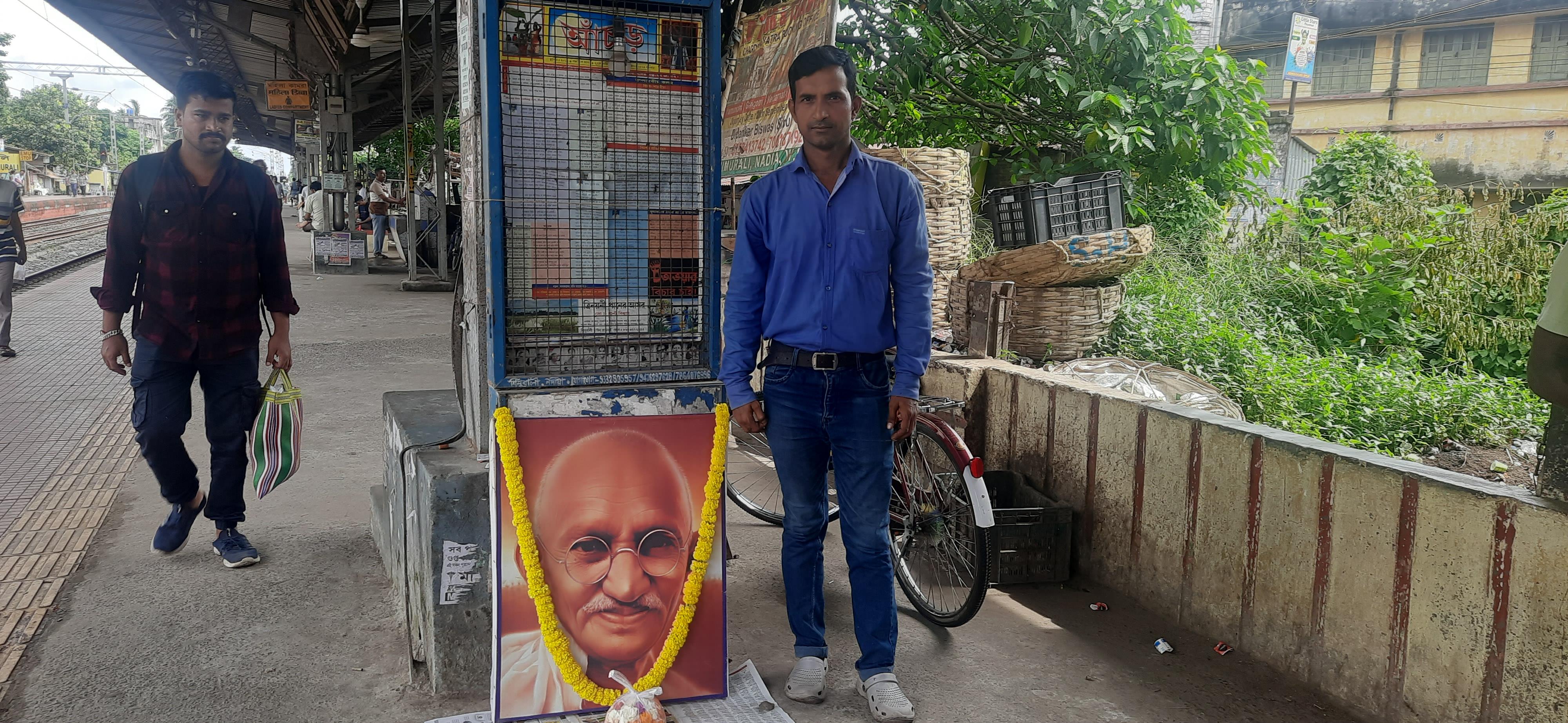 প্রদীপ মৈত্র নদীয়া: পূর্ব রেলের শিয়ালদহ শাখার শিমুরালী ষ্টেশনের ডাউন প্ল্যাটফর্মে জাতির জনক গান্ধীজীর জন্মদিবস পালন করলেন শিমুরালী জাতীয় কংগ্রেসের যুবনেতা বিধান ঘোষ। সঙ্গে আরো অনেকে ছিলেন।