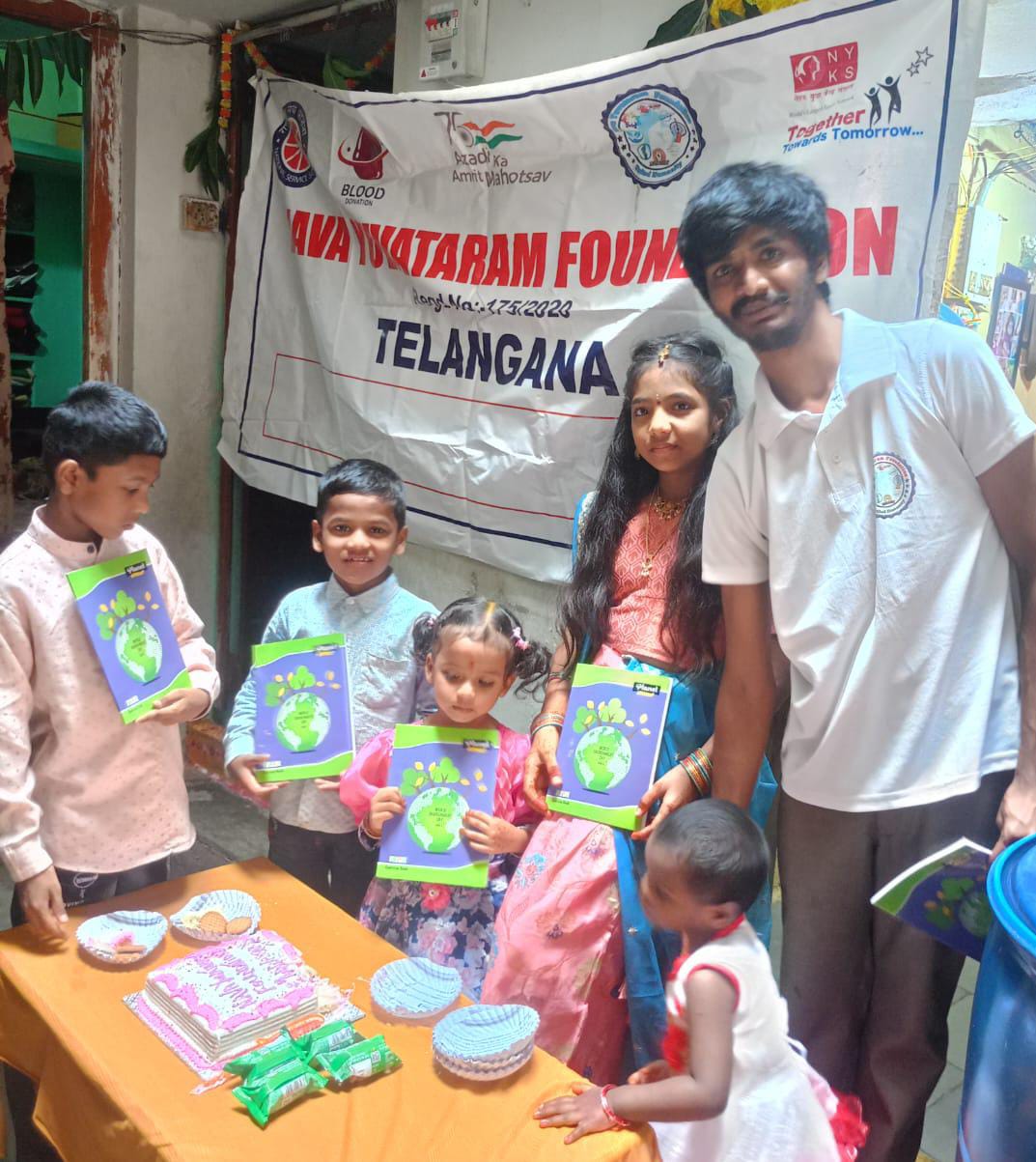 నవ యువతరం ఫౌండేషన్కు చెందిన ఐదవ వార్షికోత్సవ వేడుకలు తెలంగాణలో ఘనంగా నిర్వహించారు. ఈ సందర్భంగా పేద విద్యార్థులకు పుస్తకాలు, పెన్నులు పంపిణీ చేస్తూ విద్యా సాధనలో ఒక అడుగు ముందుకు వేశారు. అల్పాహారాల పంపిణీతో పాటు కేక్ కటింగ్ కార్యక్రమం కూడా ఆకట్టుకున్నది.ఈ ఫౌండేషన్, యువత శక్తిని సమాజ సేవలో ఉపయోగించుకునే లక్ష్యంతో 2020లో స్థాపించబడింది. ఐదేళ్ల మార్గదర్శకత్వంలో విద్య, ఆరోగ్యం, పర్యావరణం వంటి రంగాల్లో అనేక కార్యక్రమాలు చేపట్టారు. ఈసారి వార్షికోత్సవం ద్వారా విద్యార్థుల ప్రోత్సాహానికి ప్రత్యేక దృష్టి పెట్టారు.కార్యక్రమాన్ని ఫౌండేషన్ సభ్యులైన కె. సాయి ప్రకాష్, రూప బంగారెడ్డి, సుమలత, పవన్, సిరాజ్ ప్రధానంగా నిర్వహించారు. వీరు మాట్లాడుతూ, "విద్య ద్వారానే యువత భవిష్యత్తును ఆకారం ఇవ్వగలదు. పేదలకు సహాయం చేయడమే మా ముఖ్య లక్ష్యం" అని పేర్కొన్నారు. ఈ కార్యక్రమంలో భాగస్వాములు, స్థానిక నాయకులు, విద్యార్థులు, తల్లిదండ్రులు పాల్గొని ఫౌండేషన్కు అభినందనలు తెలిపారు.