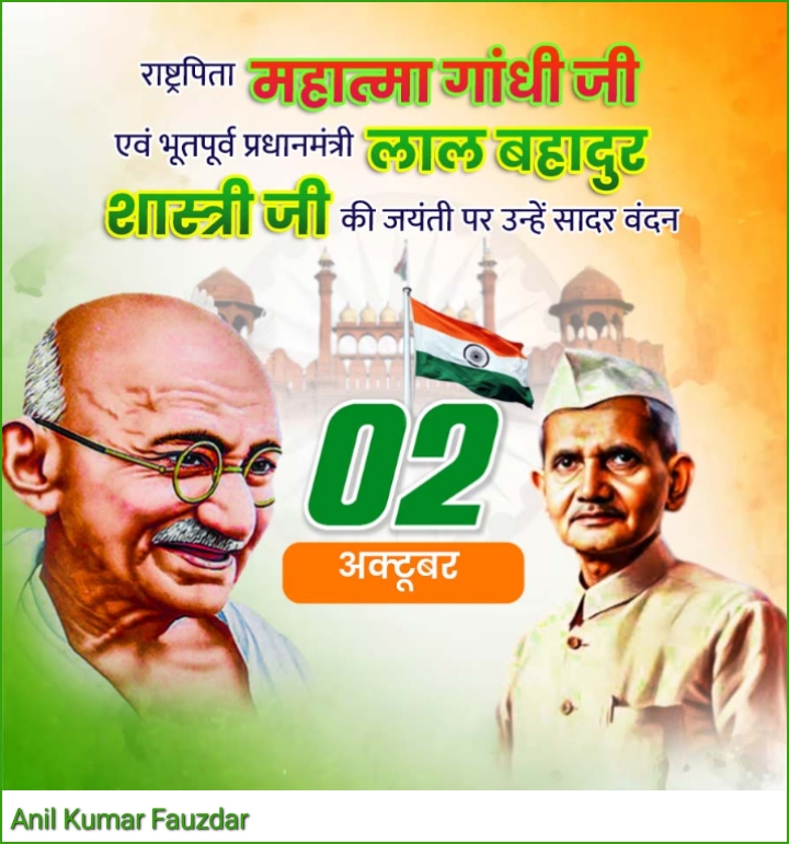 Rashtrapita Mahatma Gandhi ji and Bhupurv Pradhanmantri Lal Bahadur shastri ji ki Jayanti par unhen sadar Naman evam Vandan