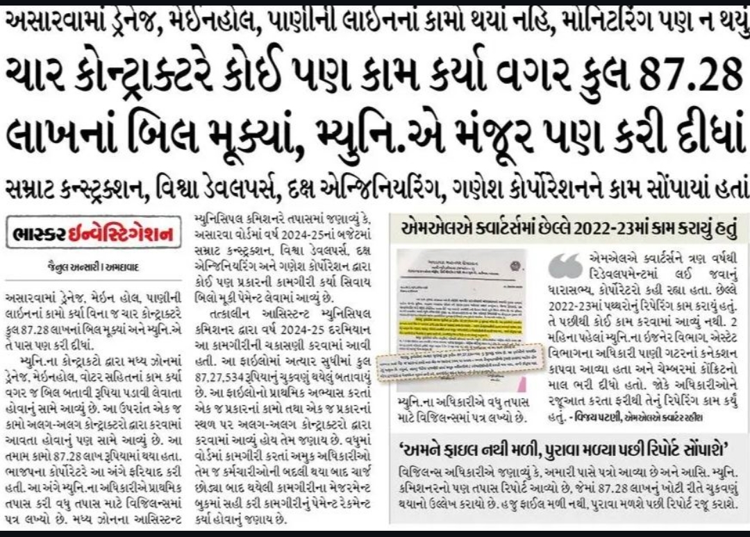 GUJRAT SE चार ठेकेदारों ने बिना काम किए ही 87.28 लाख रुपए के बिल लगा दिए, नगर पालिका ने भी मंजूरी दे दी