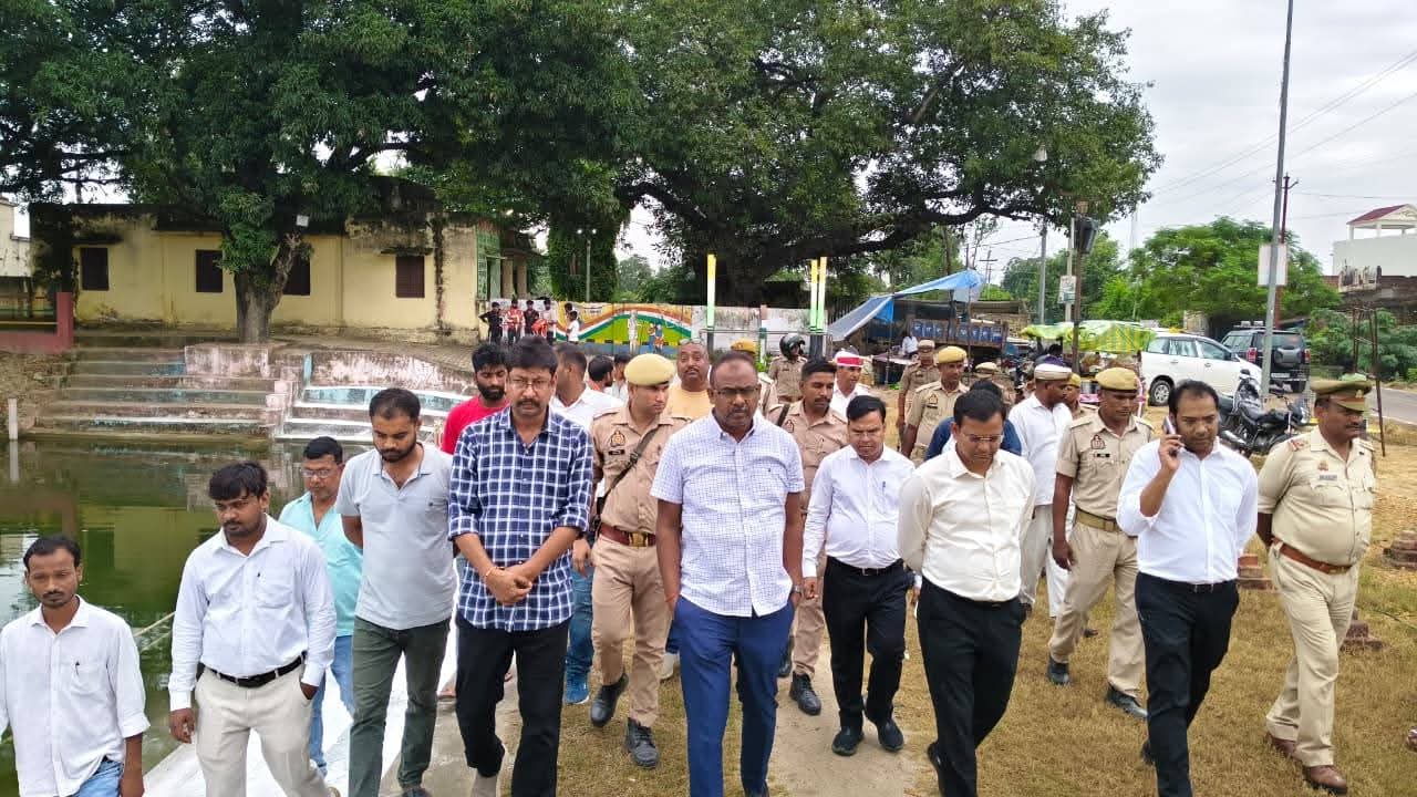 आदर्श नगर पंचायत बृजमनगंज के दुर्गा मूर्ति विसर्जन घाट एवं कल्याण मंडप का निरीक्षण किया गया