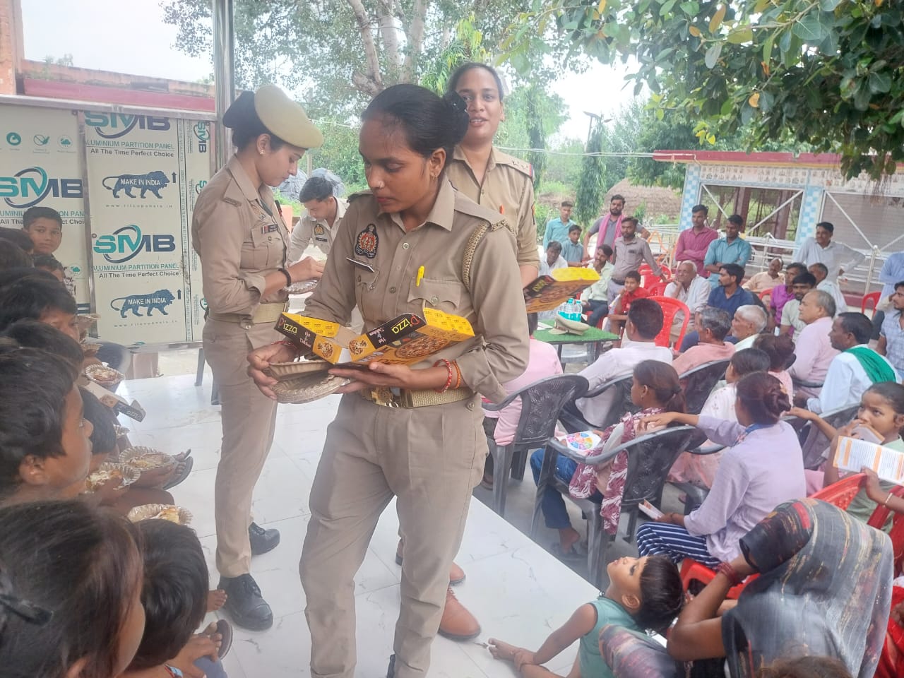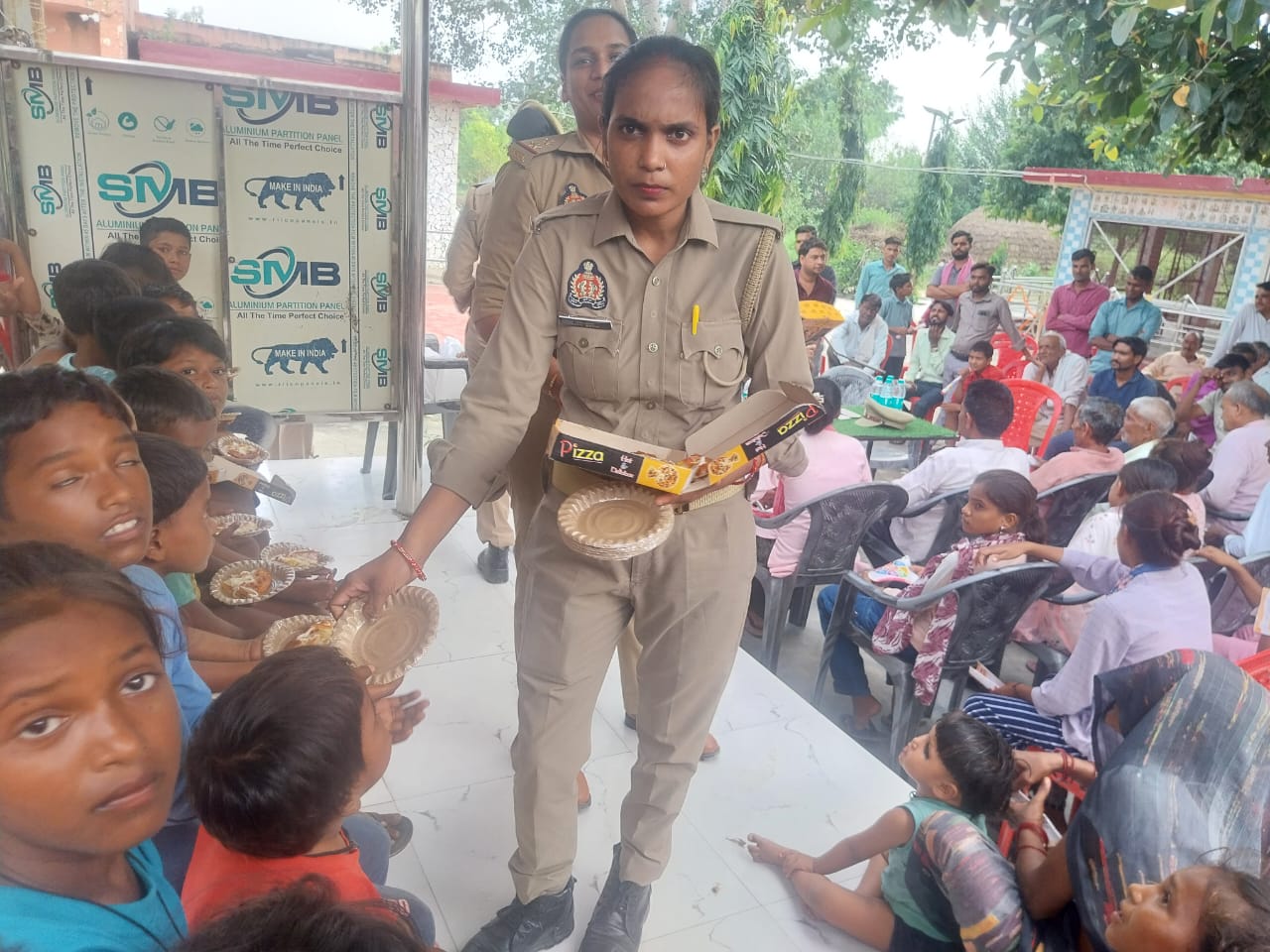 गुन्नौर पुलिस की अनोखी पहल कन्याओं को पिज्जा खिलाकर कराया कन्या भोज, पूजन कर लिया आशीर्वाद