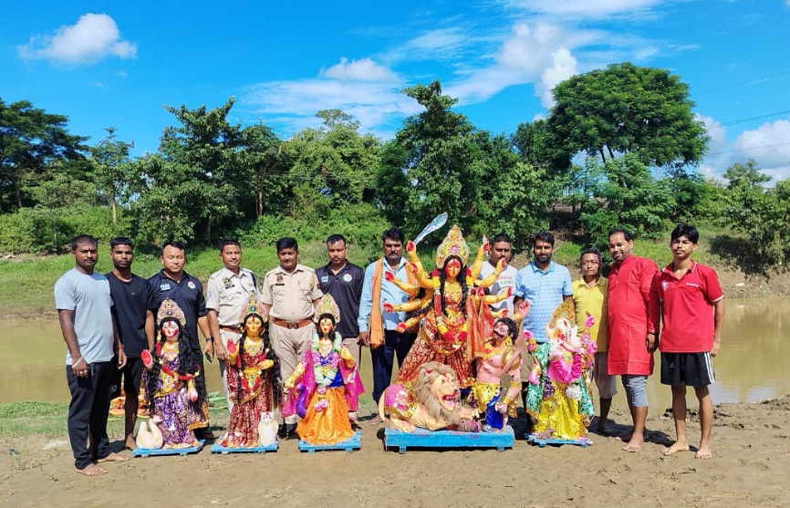 धन्सीरी नदी में शांतिपूर्ण ढंग से सम्पन्न हुआ दुर्गा प्रतिमा विसर्जन