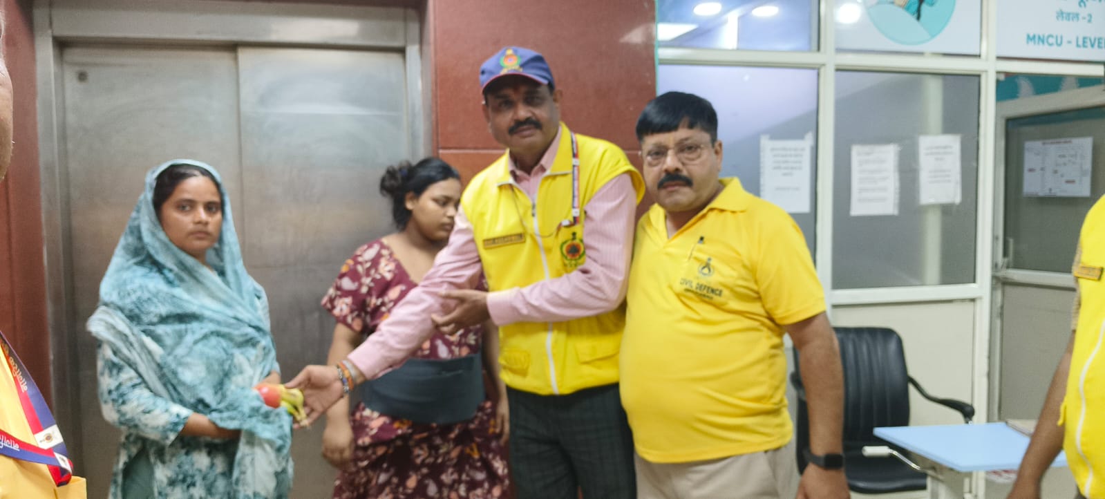 गाजियाबाद। जीटी रोड स्थित एम एम जी राजकीय जिला चिकित्सालय में गांधी जयंती के शुभ अवसर पर नागरिक सुरक्षा ने मरीजों को फल वितरण किया।उक्त कार्यक्रम उप नियंत्रक नीरज चक चीफ वार्डन ललित जायसवाल एवं सहायक उप नियंत्रक एवं कार्यालय पर प्रभारी गुलाम नवी जी के दिशा निर्देशन में संपन्न हुआ। उक्त कार्यक्रम के प्रभारी डिवीजनल वार्डन आरक्षित हर्ष वर्मा एवं सह प्रभारी टाउन हॉल डिवीजन के डिवीजनल वार्डन दीपक अग्रवाल के नेतृत्व में किया गया। इस अवसर पर जीटी रोड स्थित एम एम जी जिला चिकित्सालय में टाउन हॉल डिवीजन एवं कोतवाली डिविजन के पदाधिकारीयों ने सभी वार्डों में भर्ती मरीजों को फलों का वितरण किया गया और उनके जल्द स्वस्थ होने की कामना की गई।इसके अतिरिक्त सफाई अभियान ध्वजारोहण गांधी जी की चित्र पर माल्यार्पण, पुष्पांजलि एवं एवं वृक्षारोपण आदि कार्यक्रमों का अलग-अलग स्थान पर आयोजन किया गया।नागरिक सुरक्षा द्वारा सभी राष्ट्रीय पर्व पर 26 जनवरी, 15 अगस्त, एवं 2 अक्टूबर को चिकित्सालय, कुष्ठ आश्रम एवं अनाथ आश्रम में फलों का वितरण किया जाता है।इस अवसर पर डिवीजनल वार्डन रिजर्व हर्ष वर्मा डिवीजनल वार्डन दीपक अग्रवाल, डिप्टी डिवीजनल वार्डन संजय गोयल रवि अग्रवाल स्टाफ ऑफिसर नवनीत चौधरी, रमन सक्सेना, घटना नियंत्रण अधिकारी संजय शर्मा एवं अन्य सहयोगी वार्डन मेडिकल ऑफिसर नर्सिंग स्टाफ आदि सम्मिलित हुए।