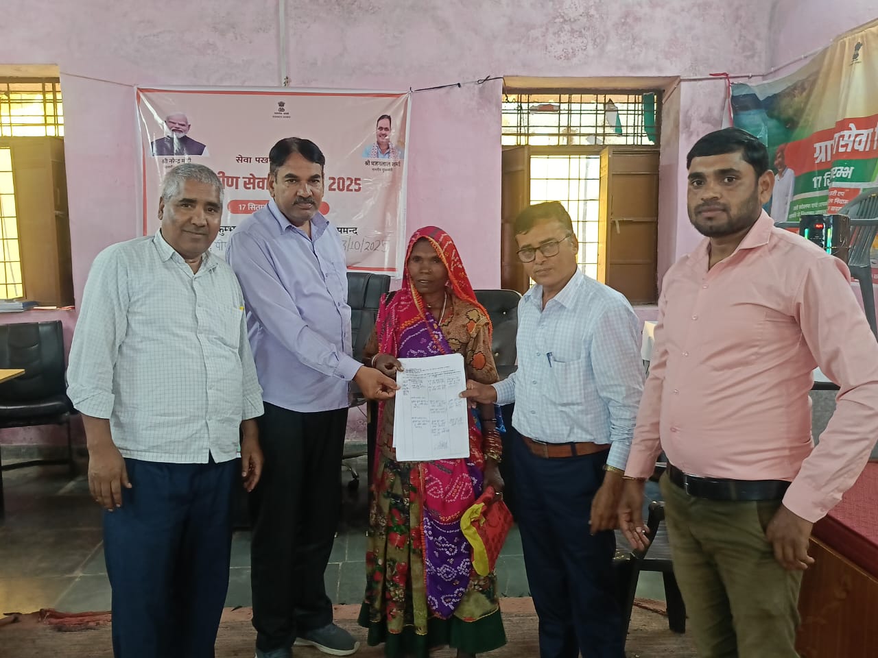 शिविर में जब मैतकी बाई ने अपनी पीड़ा उपखंड अधिकारी एवं शिविर प्रभारी सुश्री साक्षी पूरी को बताई तो उन्होंने तत्परता एवं संवेदनशीलता दिखाते हुए राजस्व विभाग की टीम को मौके पर ही आवश्यक कार्रवाई करने के निर्देश दिए। उनके आदेश पर तहसीलदार बाबूलाल नारनोलिया, भू-अभिलेख निरीक्षक दयालाल कुम्हार, पटवारी विनोद कुमार एवं आनंद सिंह राजावत ने तुरंत पत्रावली तैयार कर भूमि रिकॉर्ड में सुधार किया और उसी समय नामांतरण खोलकर वारिसान के नाम से जमाबंदी नकल सौंप दी।