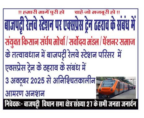 बाजपट्टी रेलवे स्टेशन पर अनिश्चित कालीन आमरण अनशन कई संगठनों के द्वारा