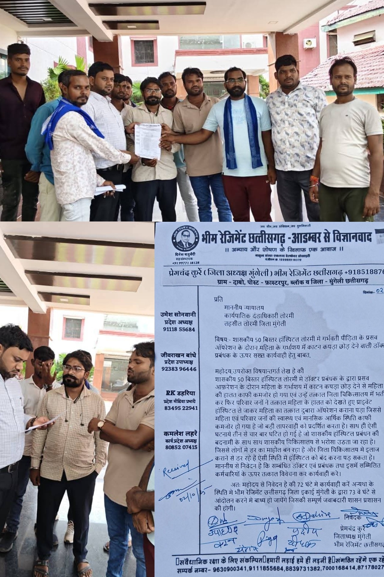 लोरमी अस्पताल में लापरवाही, महिला की हालत नाजुक – भीम रेजिमेंट ने सौंपा ज्ञापन, 72 घंटे में कार्रवाई नहीं होने पर आंदोलन की चेतावनी