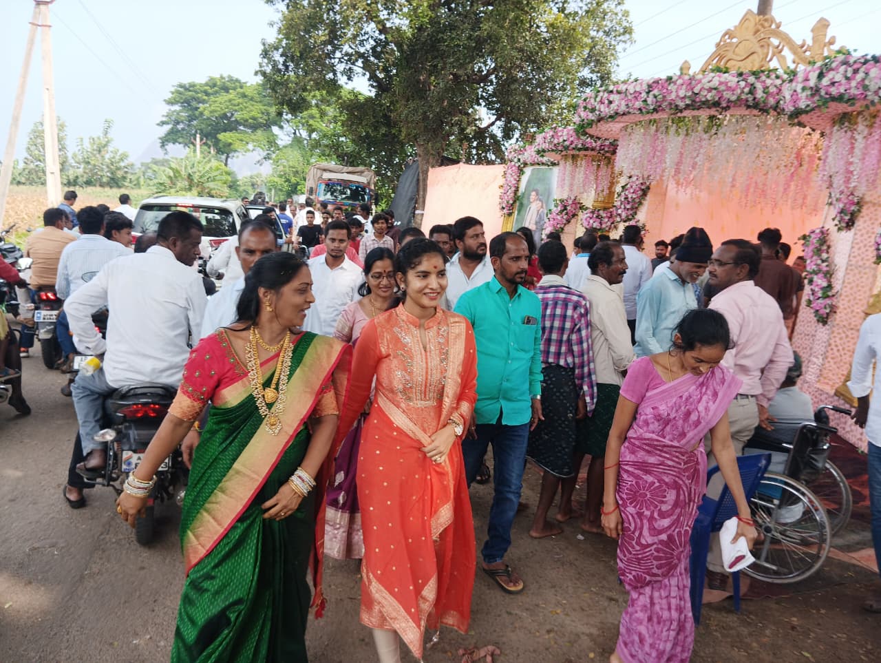 సాలూరు మండలం, మామిడిపల్లి వద్ద, భూతాడవలస గ్రామంనకు చెందిన దండి శ్రీనువాసురావు , అనంత కుమారి దంపతుల కుమార్తె చి!! వి. లేఖ్య వివాహ రిసెప్షన్ కార్యక్రమానికి ఉమ్మడి విజయనగరం జిల్లా పరిషత్ చైర్ పర్సన్, వై.యస్.ఆర్.సి.పి.జిల్లా అధ్యక్షులు మరియు భీమిలి నియోజకవర్గం సమన్వయకర్త శ్రీ మజ్జి శ్రీనివాసరావు (చిన్న శ్రీను) కుమార్తె చిన్న శ్రీను సోల్జర్స్ అధ్యక్షురాలు సిరమ్మ శనివారం పాల్గొని వధూవరులకు నూతన వస్త్రాలను బహుకరించి వారికి శుభాకాంక్షలు తెలిపారు.
