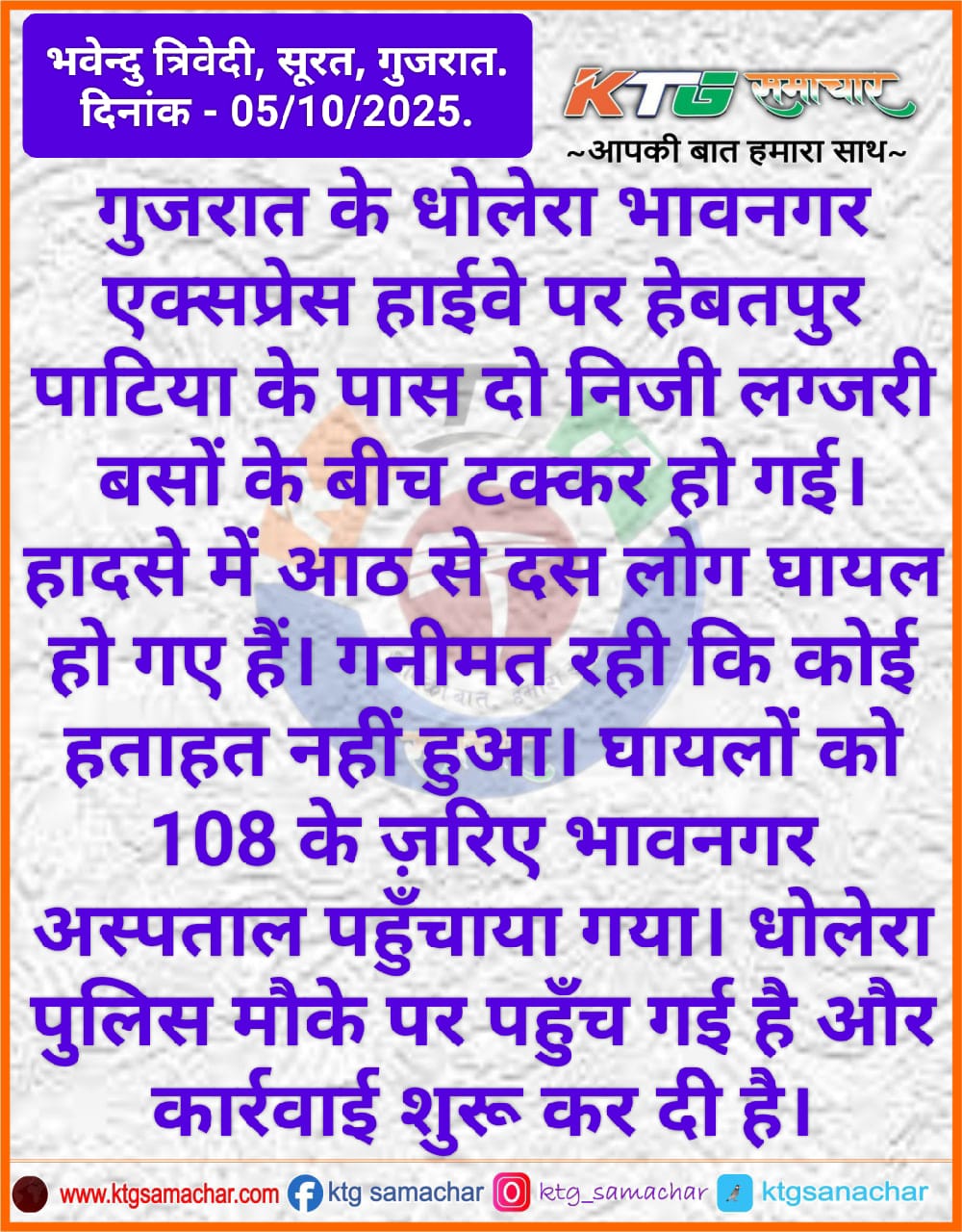 गुजरात के धोलेरा भावनगर एक्सप्रेस हाईवे पर दो निजी लग्जरी बसों के बीच टककर हो गई।