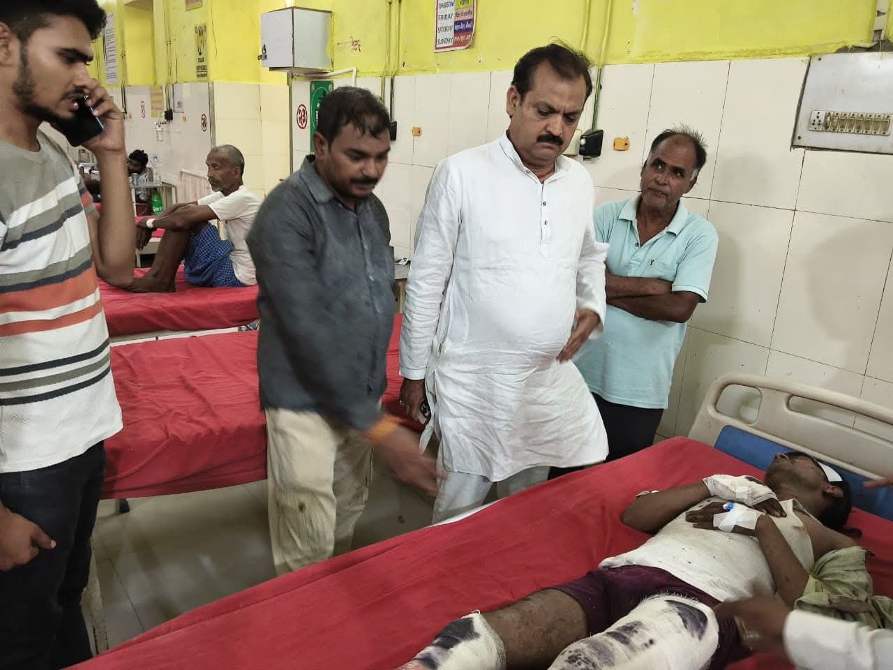 बीकापुर कोतवाली के सामने गांव में एक मकान में हुआ जबरदस्त विस्फोट मामला, मकान की छत उड़ी की सूचना पर दो गंभीर घायल को जिला अस्पताल पहुंचकर तेंदुआ माफी के विजय यादव पिता श्री हरिहर यादव व विवेकानंद पांडेय पिता श्री कृष्णानंद पांडेय स्वास्थ्य का हाल-चाल जाना और मृतक श्रवण यादव पिता श्री श्याम लाल यादव की पोस्टमार्टम हाउस पहुंचकर शोक संवेदना व्यक्त किया। अनूप सिंह ने कहा मृतक के परिजन को 50 लाख मुआवजा तथा घायलों को पांच पांच लाख मुआवजा की मैं मांग करता हूं।