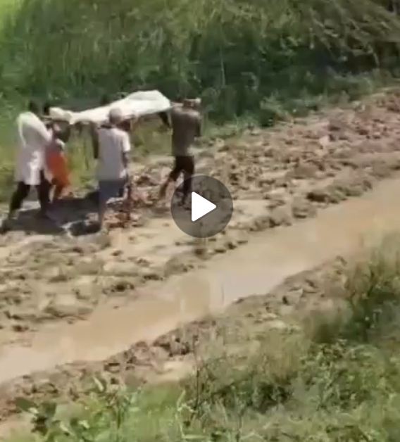 *शव को कंधे में रखकर दलदल भरे रास्ते से गुजरने को मजबूर ग्रामीण,*