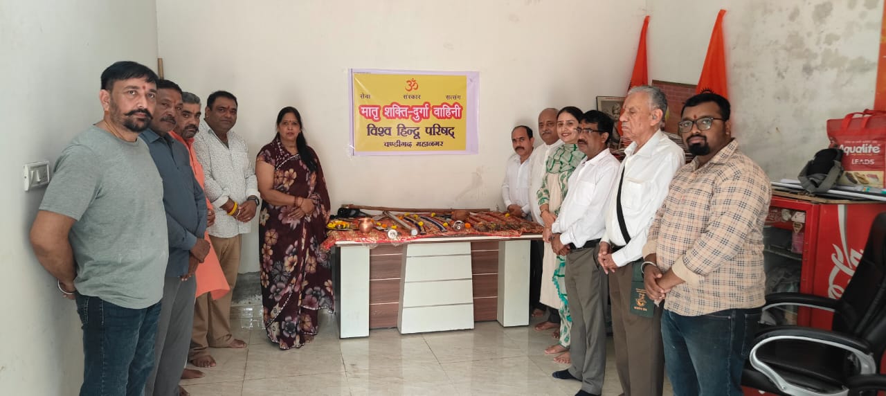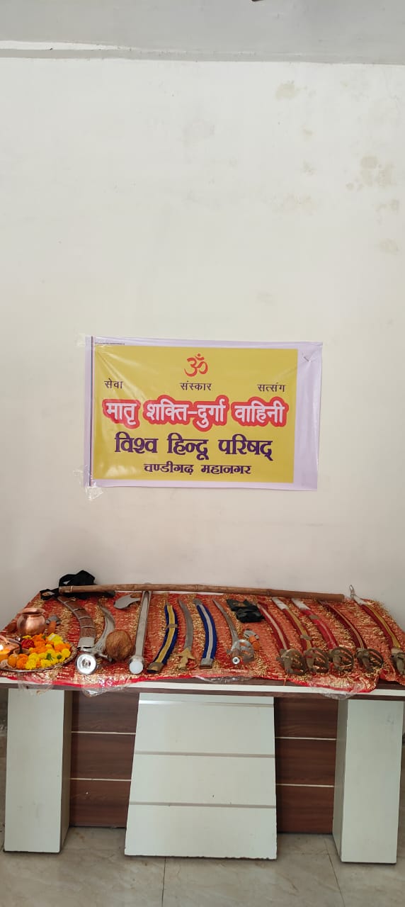 विश्व हिंदू परिषद मातृशक्ति एवं दुर्गा वाहिनी चंडीगढ़ द्वारा शस्त्र पूजन का कार्यक्रम शिव मानस मंदिर फेस 2 इंडस्ट्रियल एरिया में रखा गया, कार्यक्रम के तत्पश्चात संगठन विस्तार करते हुए महाराणा प्रताप प्रखंड में बलजीत सिंह (पूर्व इंस्पेक्टर चंडीगढ़ पुलिस) को प्रखंड अध्यक्ष का दायित्व दिया गया। इस कार्यक्रम में विभाग मंत्री प्रदीप शर्मा ,पंजाब प्रांत संघर्षक कर्नल धर्मवीर,पंजाब प्रांत प्रचार प्रसार प्रमुख सुरेश राणा, विभाग विशेष संपर्क प्रमुख डॉ संदीप कौर संधू , विहिप चंडीगढ़ महानगर अध्यक्ष अरविंद मोदगिल,उपाध्यक्ष रेनू रोहिल्ला, दविंदर सिद्धू, राकेश चौधरी, मंत्री अंकुश गुप्ता ,सह मंत्री पंकज शर्मा ,विश्वकर्मा प्रखंड मंत्री रोहित राय एवं बालाजी सेवा समिति से डी सी भगत मुख्य रूप से उपस्थित रहे।