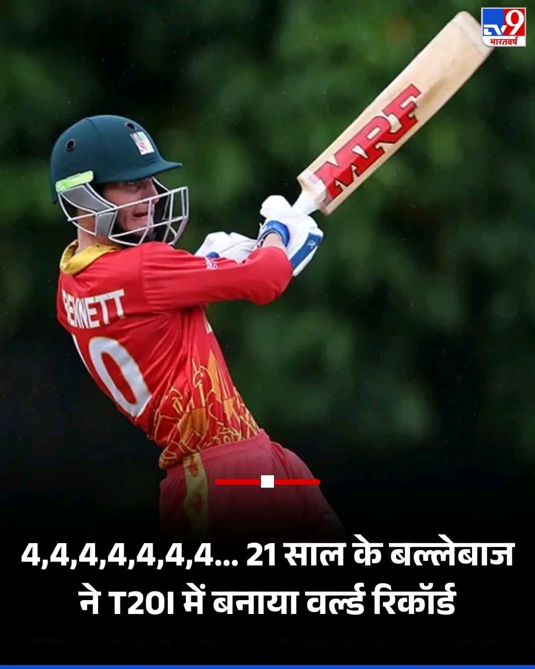 जिम्बाब्वे के 21 साल के बल्लेबाज ब्रायन बैनेट ने 72 घंटे के अंदर दूसरा वर्ल्ड रिकॉर्ड बनाया है. 30 सितंबर को वो तीनों फॉर्मेट में शतक बनाने वाले दुनिया के सबसे युवा बल्लेबाज बने तो अब 2 अक्टूबर को T20 वर्ल्ड कप 2026 के क्वालिफिकेशन मुकाबले में केन्या के खिलाफ उन्होंने एक और बड़ा रिकॉर्ड बना दिया है.
