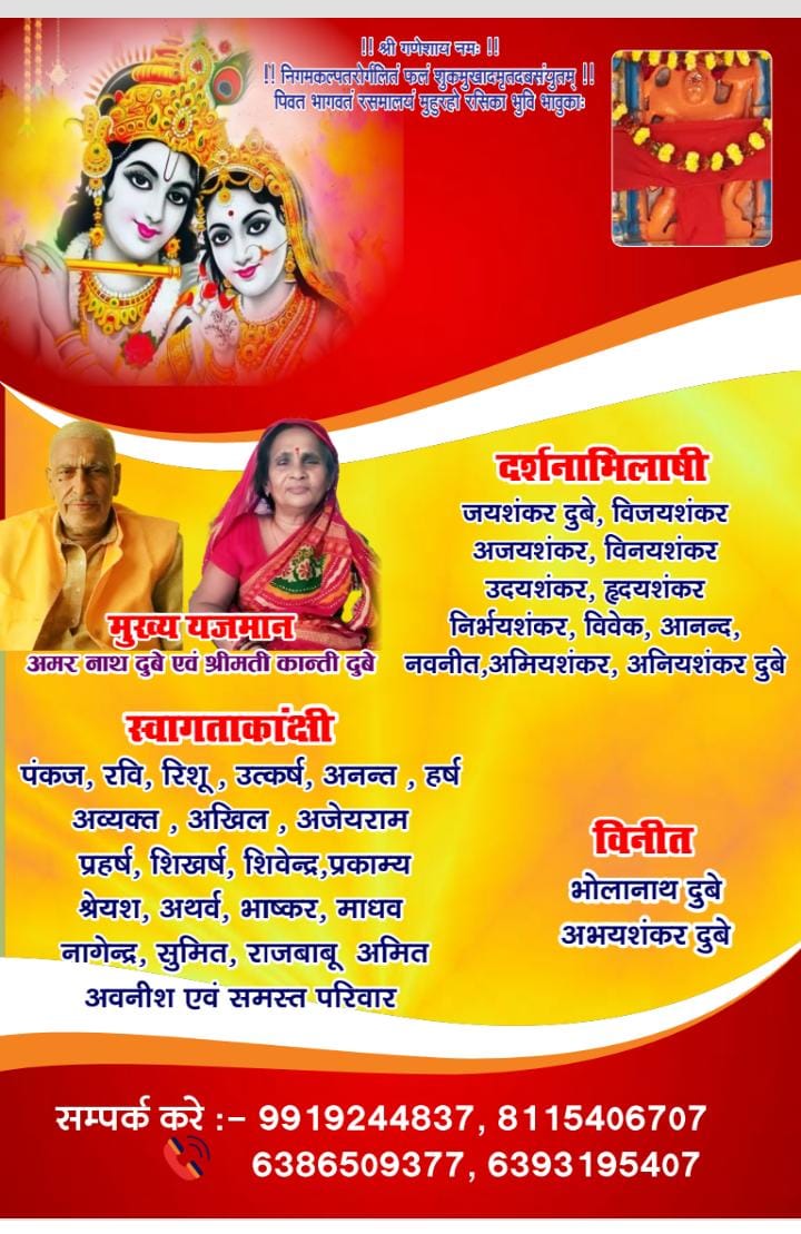 स्वतंत्रता संग्राम सेनानी पंडित जंगीराम दुबे के वंशजों ने भगवान भागवत की कलश यात्रा, कथा एवं भंडारे में आमजनमानस एवं मीडिया बंधुओं को सम्मिलित होने का किया आह्वान-