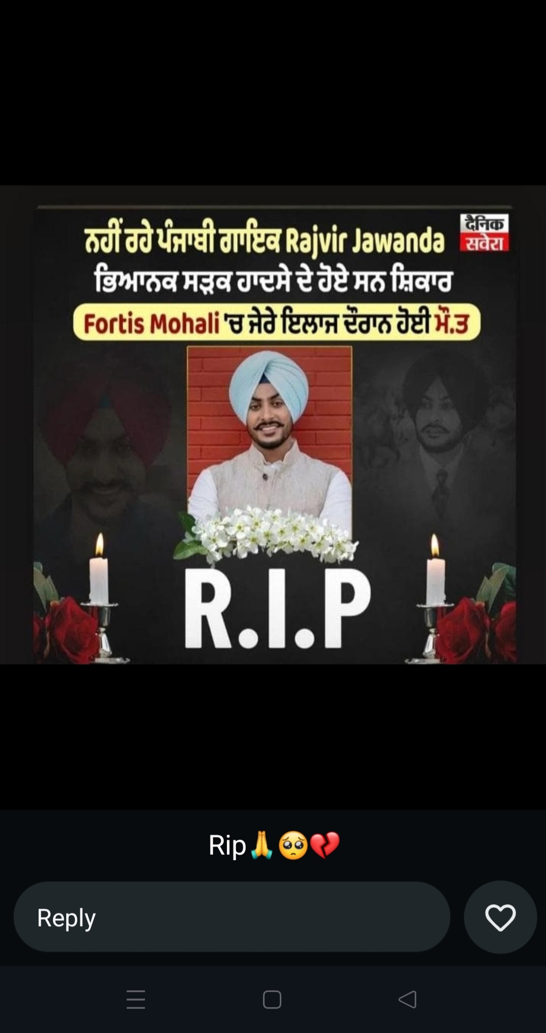 Mashhur gayak Rajvir jawanda ka Fortis hospital mein unka dehant motorcycle per ja rahe the jab unka accident hua to unko ilaaj ke liye Fortis hospital laya gaya tha
