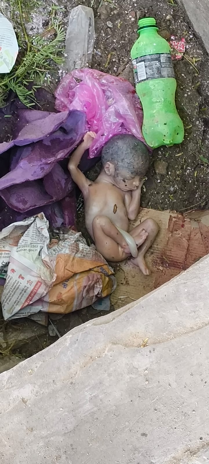 गोला का बास में नवजात शिशु नाली में पड़ा हुआ मिला किसी ने पटक दिया। बस स्टैंड पर रात को 4:00 बजे