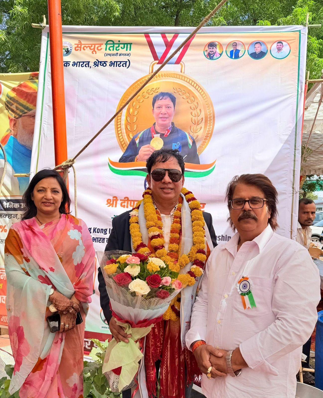 गोल्ड मेडल जितने पर दीपक शर्मा का सेल्यूट तिरंगा राजस्थान द्वारा स्वागत किया गया