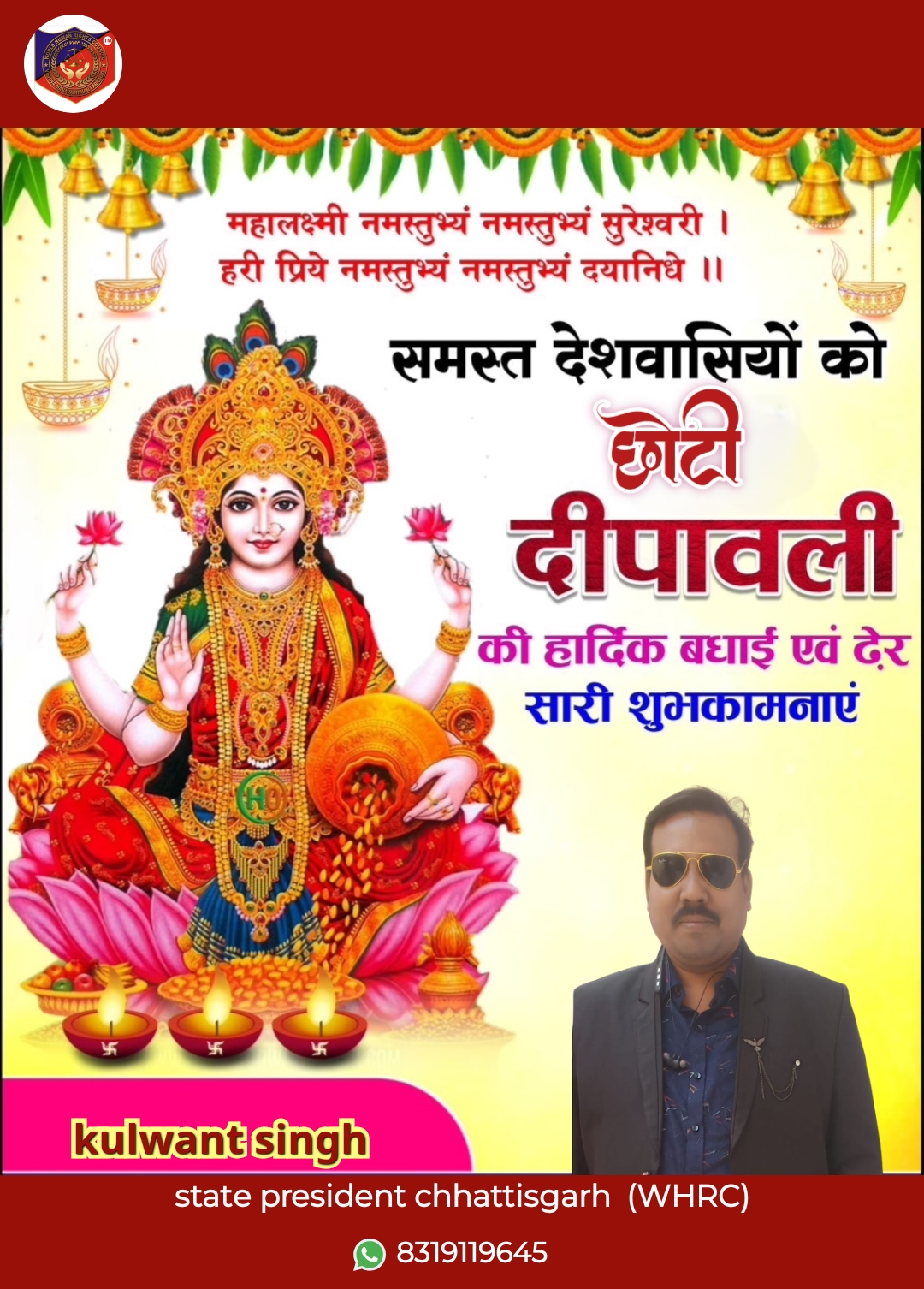 विश्व मानवाधिकार परिषद द्वारा छत्तीसगढ़ प्रदेश अध्यक्ष कुलवंत सिंह जी दिवाली प्रदेश के लोगो बाधाएं
