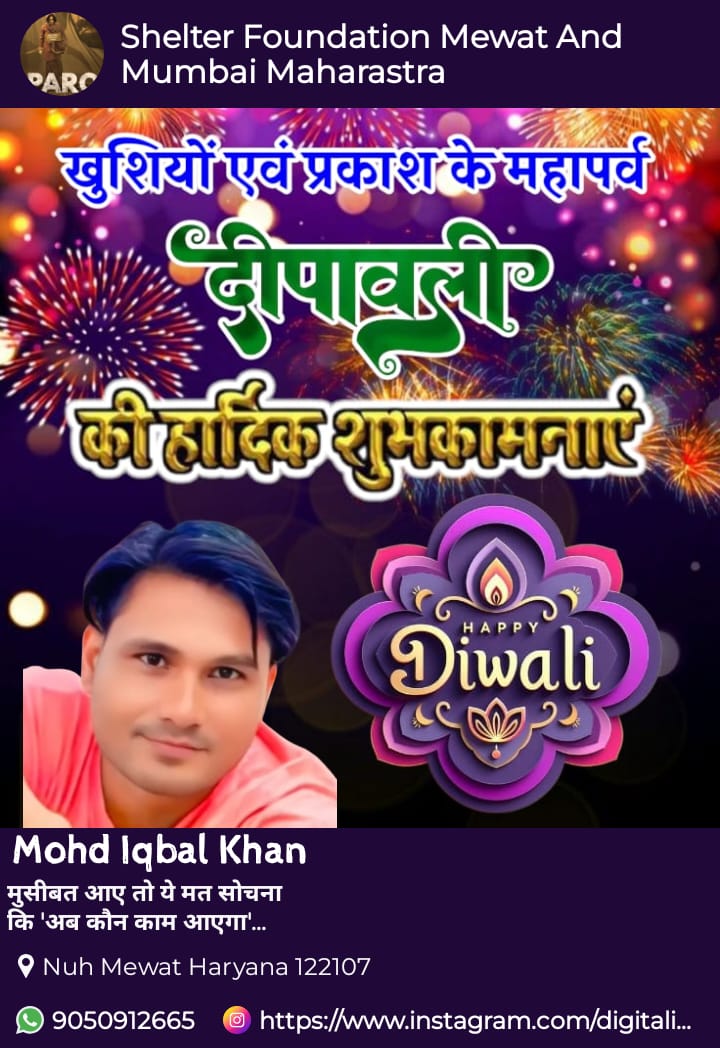 दीपावली का यह पावन पर्व आपके जीवन में ज्ञान का प्रकाश, सुख-समृद्धि, धन-धान्य और नई ऊर्जा लेकर आए। यह त्योहार आपके घर में खुशियों का दीप जलाए और आपके जीवन को रोशन करे।