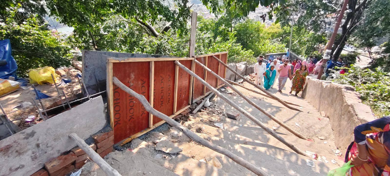 अधिशासी अभियंता सिंचाई खण्ड ओमजी गुप्ता ने अवगत कराया कि मनसा देवी पैदल क्षतिग्रस्त मार्ग के पुर्ननिर्माण/मरम्मत कार्यो के लिए भारत सरकार से 156.48 लाख की धनराशि स्वीकृत की गयी है। जिलाधिकारी के निर्देशों के अनुपालन में मंसा देवी क्षतिग्रस्त पैदल मार्ग को एवं पहाड़ी क्षेत्र के संरक्षण एवं पहाड़ी के कटाव को रोकने के उद्वेश्य से हिल ट्रीटमेंट निर्माण कार्य शुरू कर दिया गया है।