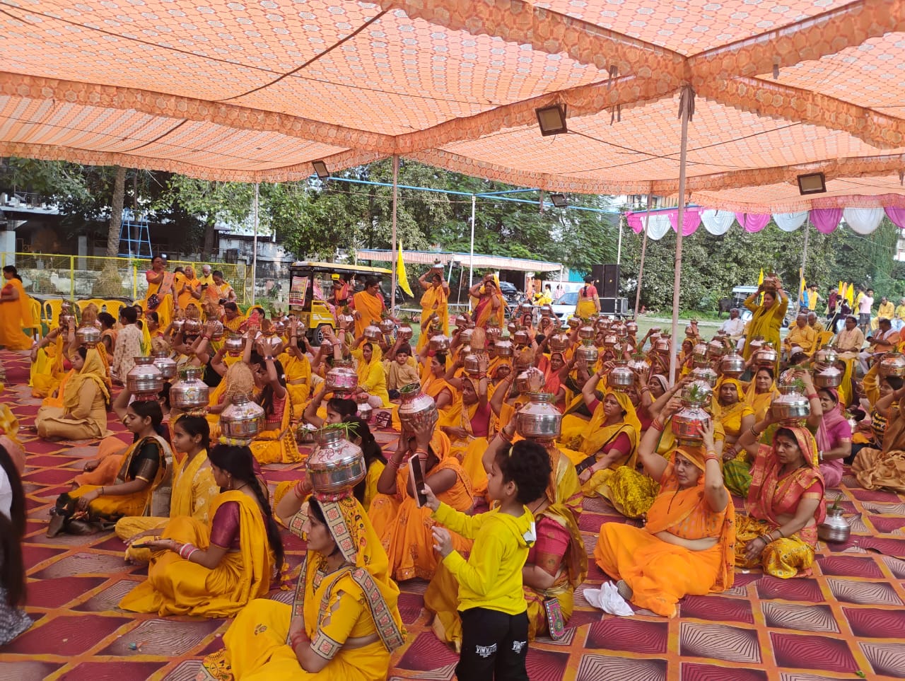 कलश यात्रा से हुआ शुभारंभ: कार्यक्रम का शुभारंभ 25 अक्टूबर को विशाल कलश यात्रा के साथ हुआ। पीले वस्त्रों में सजी-धजी महिलाओं और पुरुषों ने सिर पर मंगल कलश धारण कर क्षेत्र में शोभायात्रा निकाली। ढोल-नगाड़ों और गायत्री मंत्र के जयघोष से वातावरण भक्तिमय हो उठा। कलश यात्रा यज्ञ स्थल पर जल भरने के बाद पहुंची, जिसके बाद विधिवत यज्ञशाला का उद्घाटन किया गया।