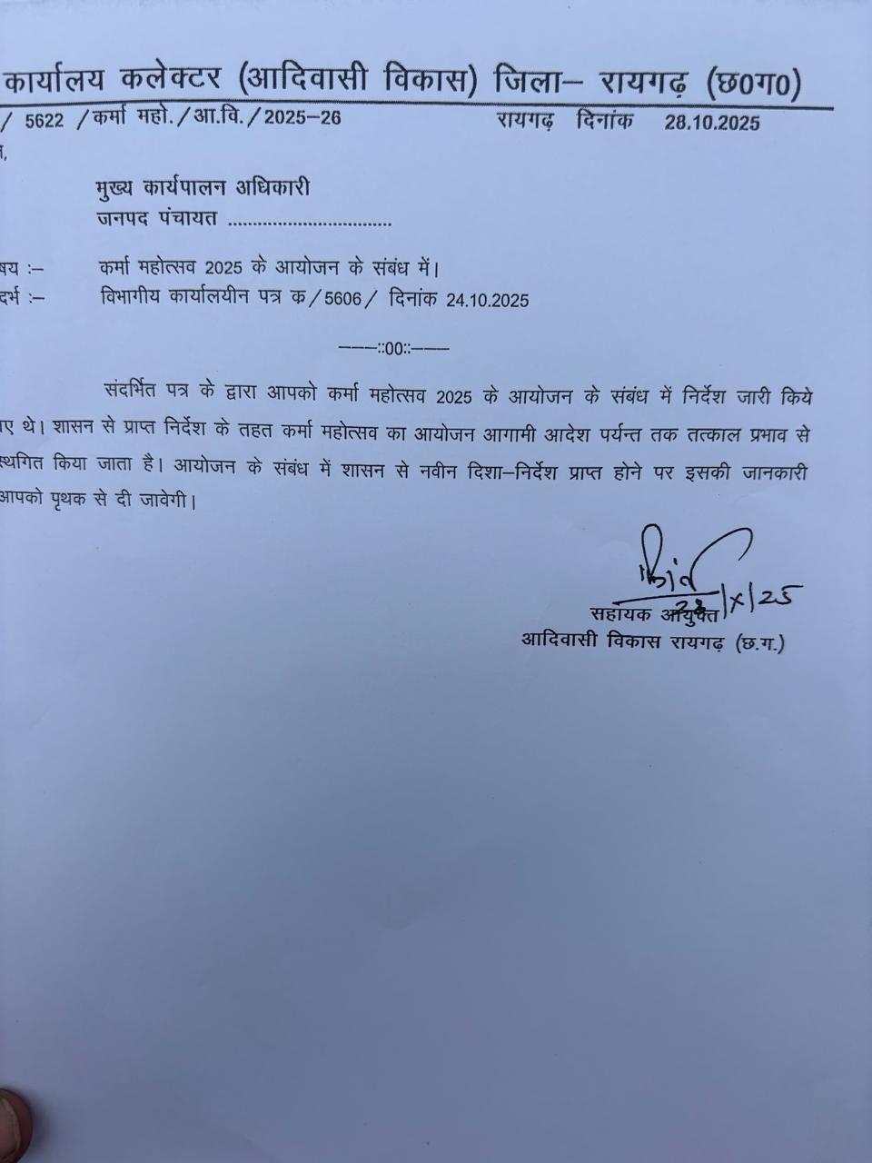 छत्तीसगढ़ शासन द्वारा 24 अक्टूबर 2025 को जारी आदेश के तहत *ग्राम से लेकर प्रदेश स्तर तक “करमा प्रतियोगिता” के आयोजन* की घोषणा की गई है। इस निर्णय के जारी होने के पश्चात जनजातीय समाज में गहरी नाराजगी और विरोध की भावना व्याप्त है।