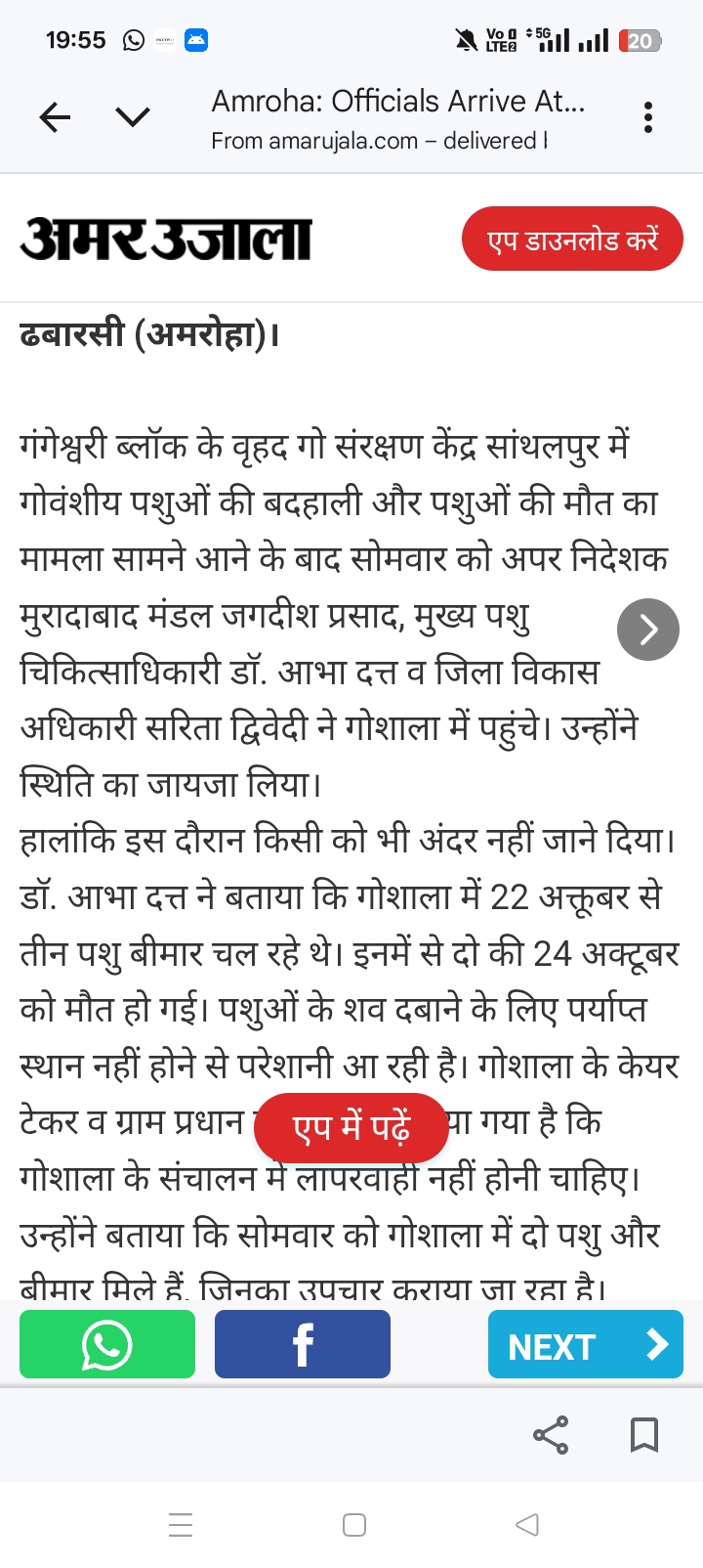 * लापरवाही की पुष्टि: मुख्य पशु चिकित्सा अधिकारी डॉ. आभा दत्त ने बताया कि गौशाला में 22 अक्टूबर से तीन पशु बीमार चल रहे थे, जिनमें से दो की मृत्यु 24 अक्टूबर को हो चुकी है। शवों के दफनाने के लिए पर्याप्त स्थान न होने से भी परेशानी सामने आई है।