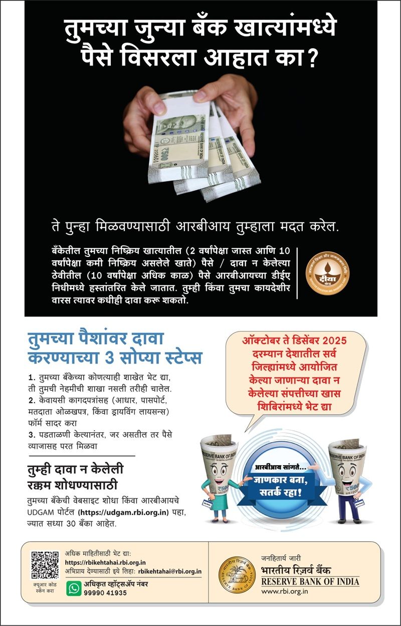 ЁЯСЙ рджрд╛рд╡рд╛ рди рдХреЗрд▓реЗрд▓реНрдпрд╛ рдареЗрд╡реА рддрдкрд╛рд╕рд╛: https://udgam.rbi.org.in