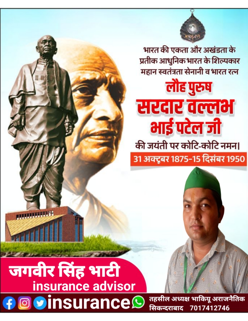 भारत रत्न 'लौह पुरुष' सरदार वल्लभ भाई पटेल जी की जयंती पर शत्-शत् नमन एवं राष्ट्रीय एकता दिवस कि हार्दिक शुभकामनाएं! कोटि कोटि नमन।।