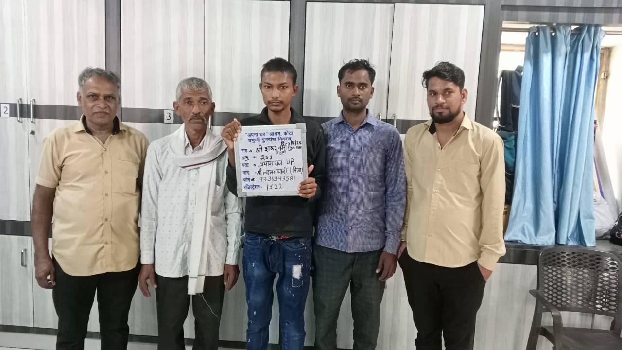 परिजनों से पुष्टि होने पर उसके पिता लक्ष्मण धारी अपने एक रिश्तेदार के साथ कोटा आए और अपने पुत्र से मिलकर बहुत प्रसन्न हुए ।उन्होंने बताया कि उनका पुत्र जो कि मानसिक रूप से स्वस्थ नहीं है सात वर्ष से घर से लापता था और उसका वास्तविक नाम शंकर नहीं अभयराज है । उन्होंने बताया कि सात वर्ष पूर्व उनका पुत्र बिना बताए घर से निकल गया था जिसे ढूंढ़ने के बहुत प्रयास किए गए लेकिन सफलता नहीं मिली । अब पूरा परिवार निराश हो गया था लेकिन अपना घर आश्रम द्वारा फ़ोन पर बात होने के बाद पूरे परिवार में ख़ुशी की लहर दौड़ गई ।