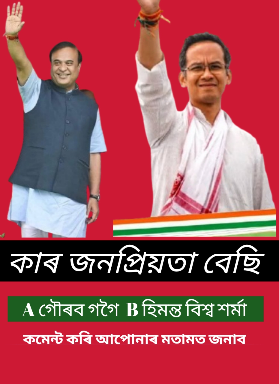 জনপ্রিয়তা অর্জন কার বেছি A গৌরব গগৈ B হিমন্ত বিশ্ব শর্মা